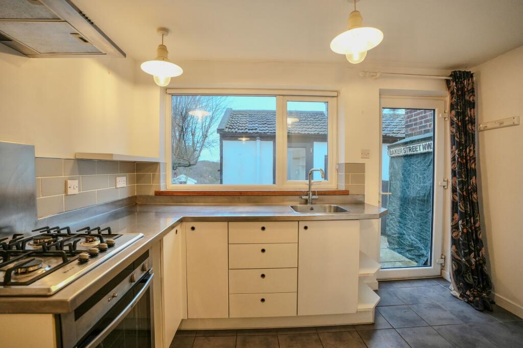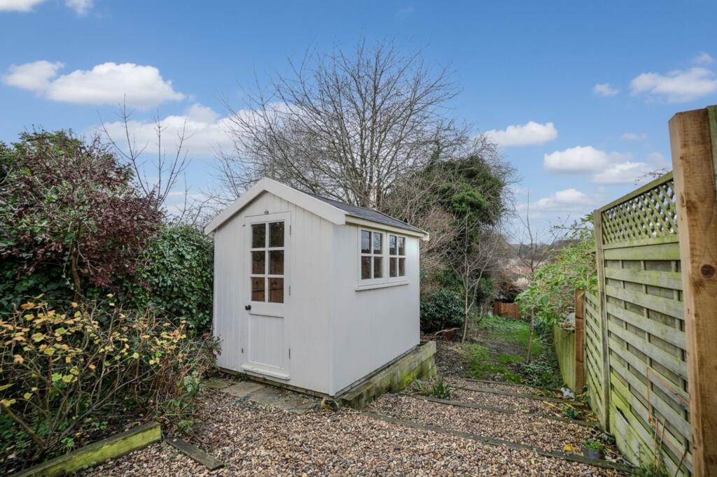 This is a two-bedroom terraced house on Jubilee Lane, Cromer. The property is listed with Millers Estate Agents. The house includes a bathroom, a garden with a shed, and is located near local schools and transportation. The interior appears to be in generally good condition, with a modern kitchen and bathroom, while retaining some traditional features such as a fireplace. The asking price of £230,000 seems reasonable given the location and condition of the property.
