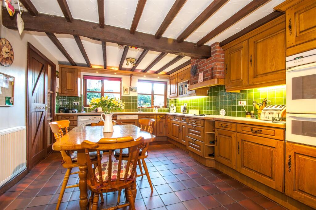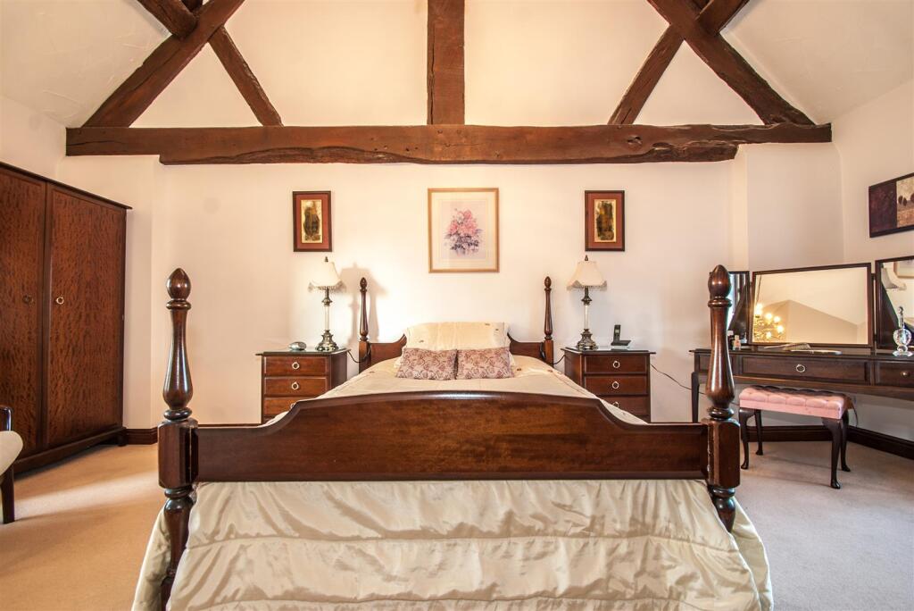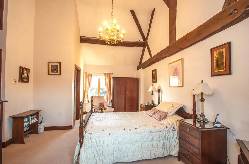 The property is a barn conversion, which is a desirable feature in the UK housing market, often commanding higher prices due to their unique character and often spacious layouts. The exposed beams throughout the property add to its charm and character. The interior is well-maintained and presented to a high standard. The kitchen and bathrooms appear modern and functional.
