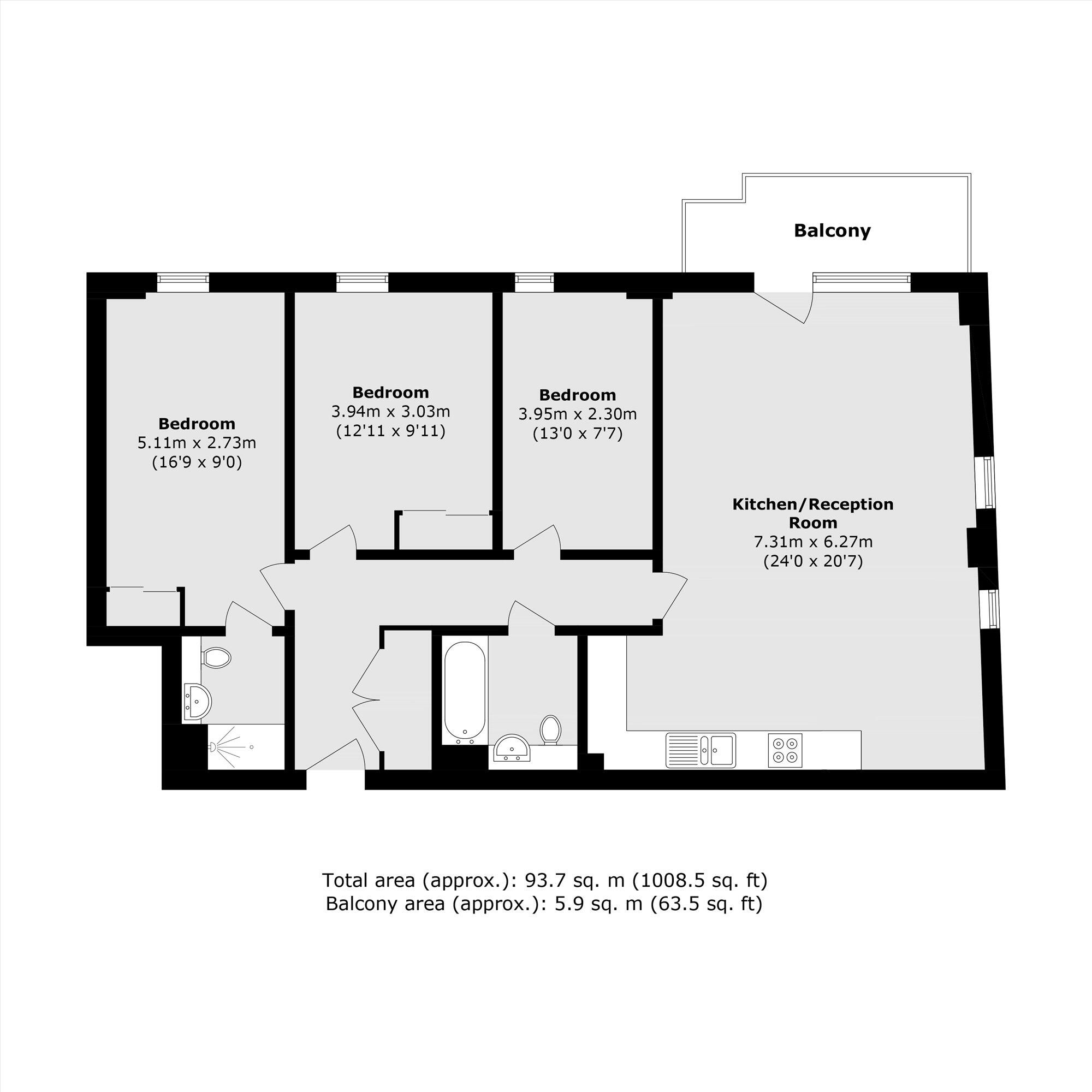 This is a 3-bedroom flat in Mile End, London. The property appears to be in good condition, with modern interiors. It benefits from its proximity to local schools and transportation links. The price seems reasonable given the square footage and the average price per square foot in the area. The lack of private outdoor space is a drawback.