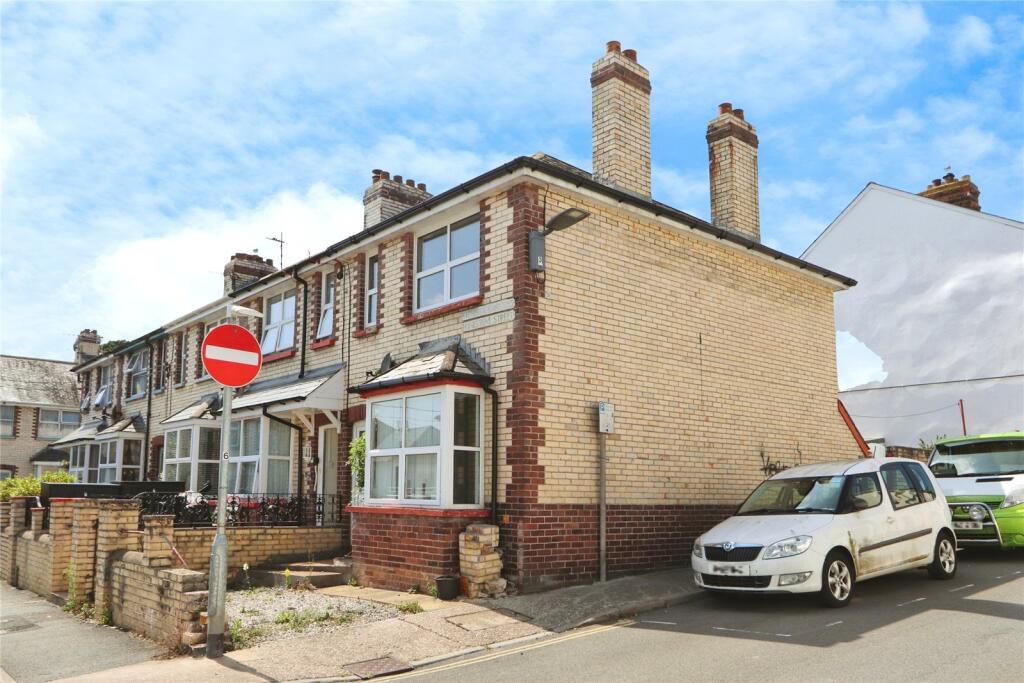 Spacious 2 bed end-terrace in Bideford with rare front parking, garden, large living space, and potential to modernise throughout. Great central location.