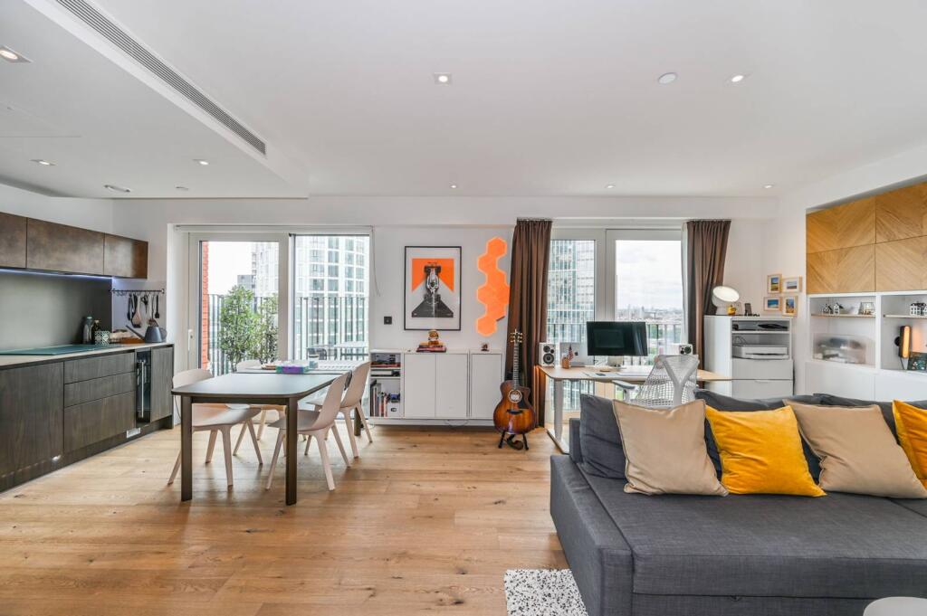 LONG LET. Set within an exclusive Nine Elms development, this gorgeous 16th floor apartment offers 1 bright double bedrooms, stunning views from the private balcony and a wonderful open plan reception room.