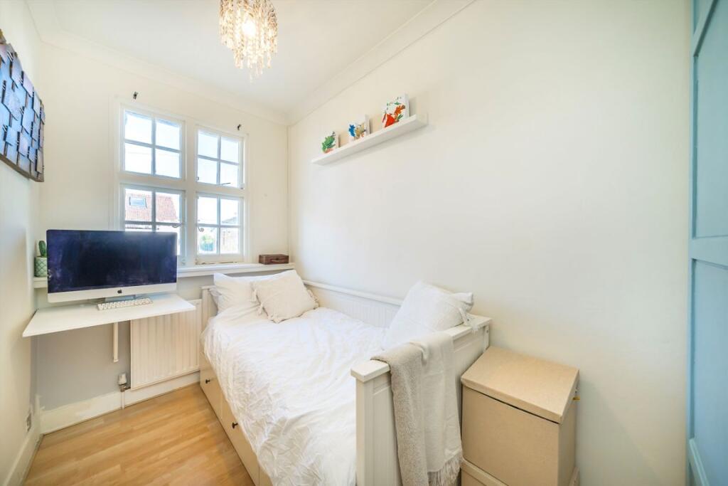 This is a semi-detached property located on Robinson Road in Colliers Wood, Merton. The property features four bedrooms and two bathrooms, offering ample space for a family. The interior includes a modern kitchen and bathrooms, while some rooms may benefit from minor renovations. The property also boasts a garden with a patio and lawn, providing outdoor space. The location is convenient, with nearby schools and transportation options. The price is reasonable considering the size and features of the property, although it is above the average price for the area.