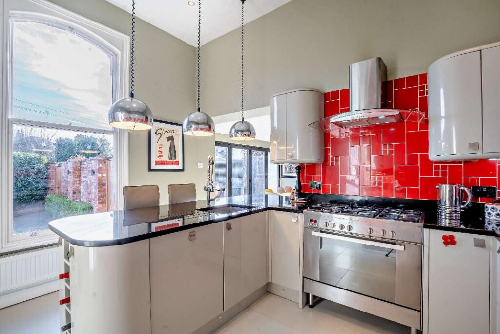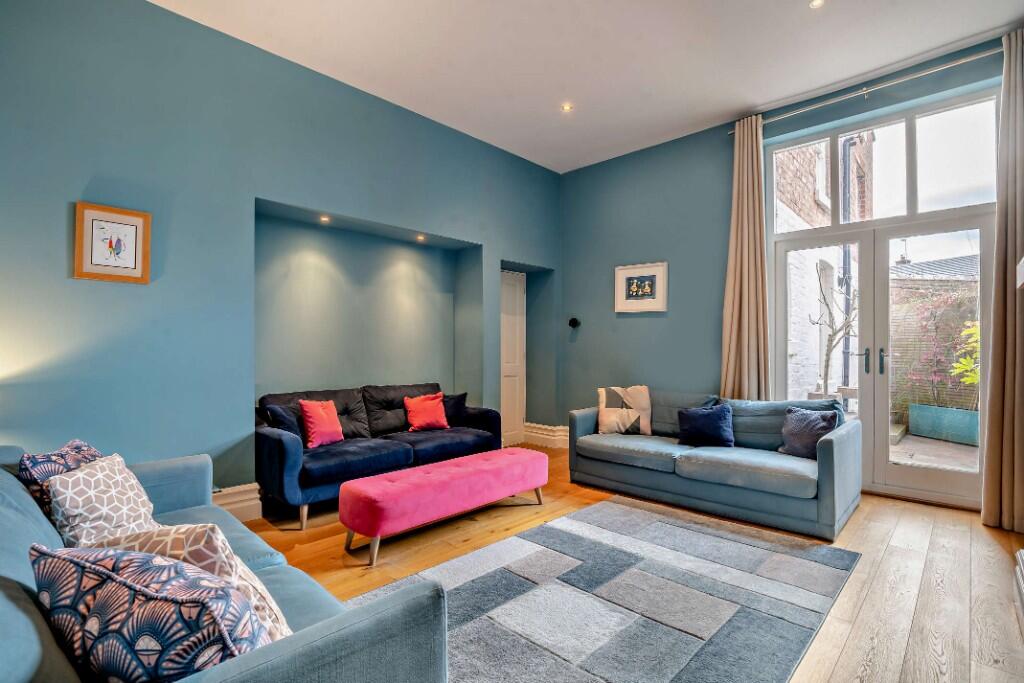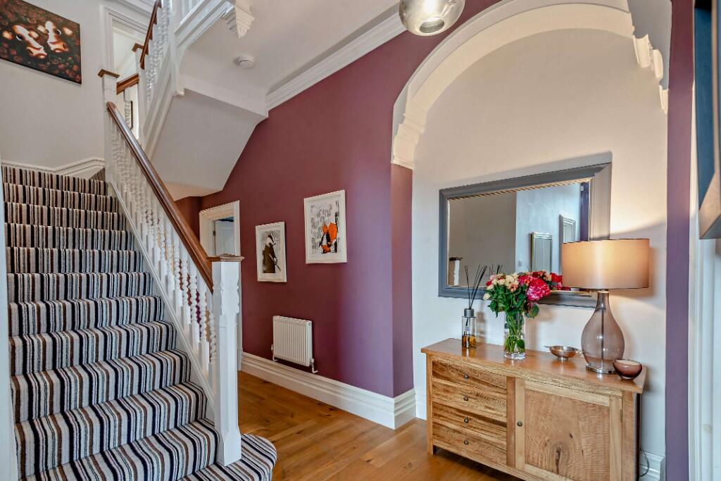 This exquisite Victorian home beautifully showcases its period charm with elegant original features, including spacious reception rooms with high ceilings, intricate moulded cornices, plus refurbished sash windows and French doors.