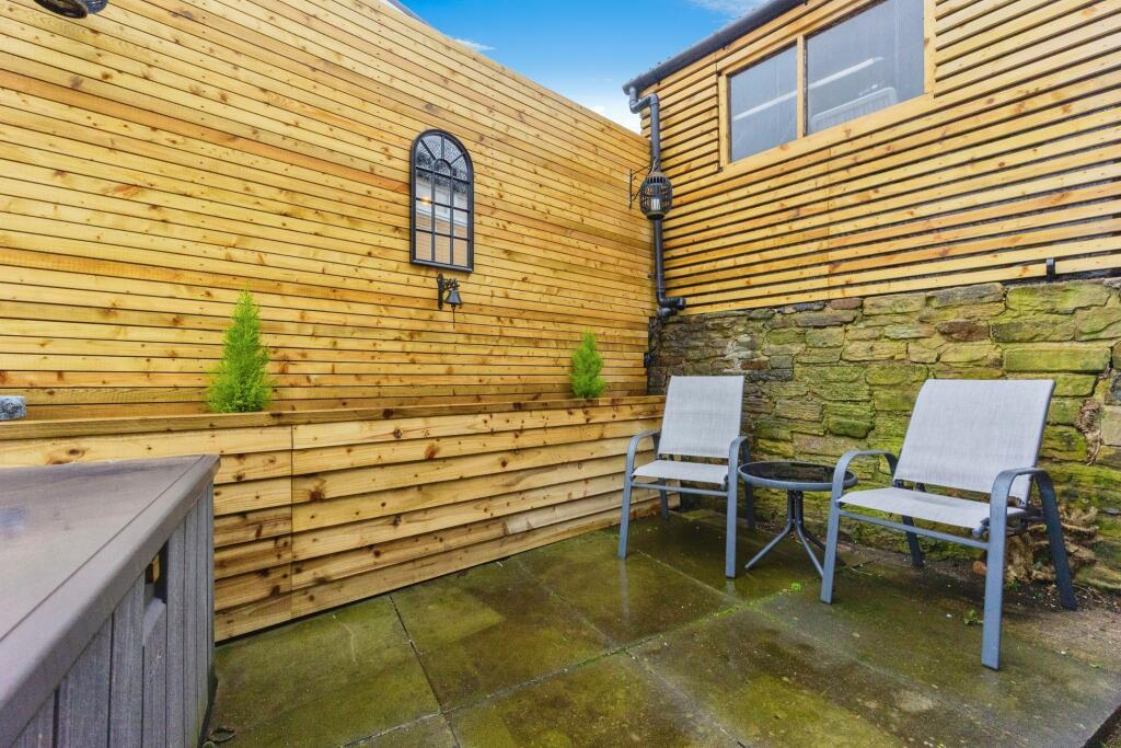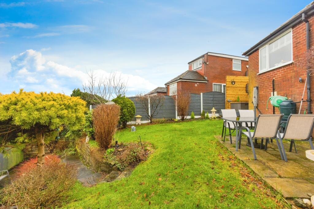 The property is a well-maintained 2-bedroom, 1-bathroom house with a modern kitchen and bathroom. The garden is tiered and features stonework, offering a degree of privacy. The location benefits from proximity to several well-regarded schools, all rated \‘Good\’ by Ofsted, within a 1.1km radius. The nearest train station, Smithy Bridge, is approximately 5.44km away. The list price of £280,000 appears to be within the reasonable range for the area, although further analysis of local price per sqft data would provide a more definitive assessment.