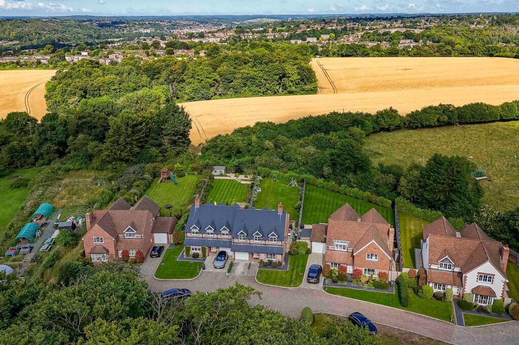 Beautiful brick & flint semi-detached family home with far-reaching views over Gomm Valley. Modern kitchen, landscaped gardens, terrace for al-fresco dining and gated community access to Gomm Valley.