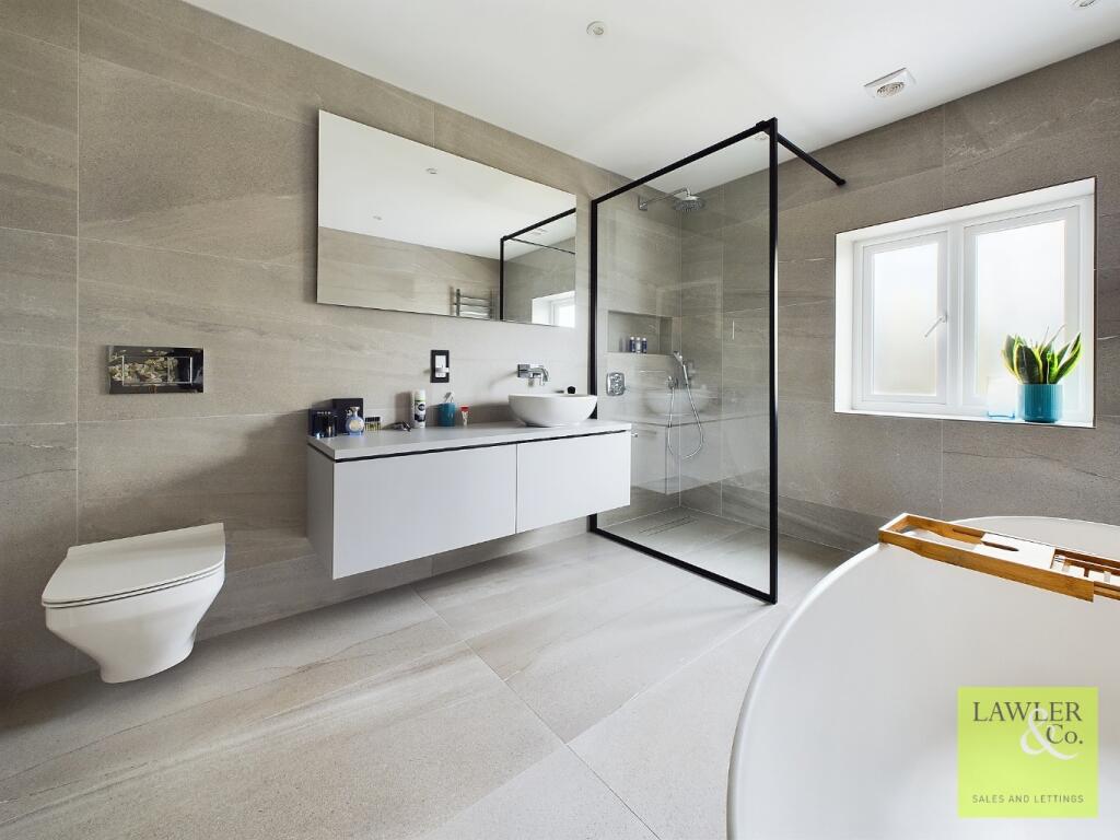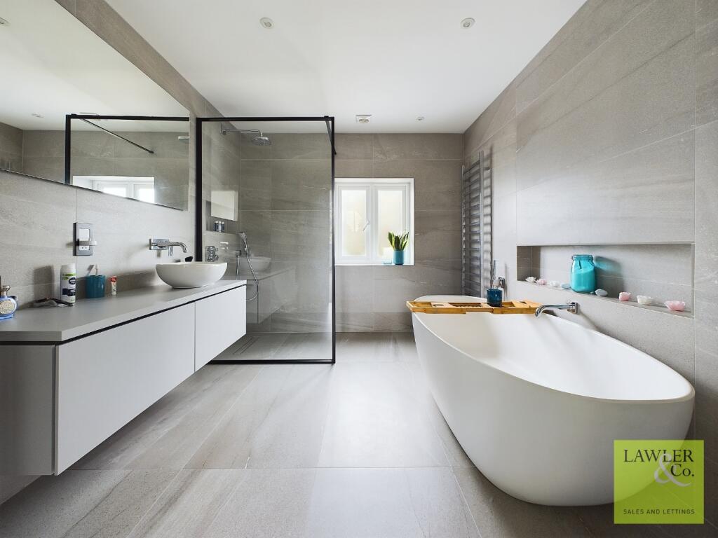 The property itself appears to be in excellent condition, showcasing a modern and well-maintained interior. The images reveal high-quality fixtures and fittings, contemporary design features, and a spacious layout. There is no visible evidence of wear and tear or the need for significant repairs or renovations. The large garden offers ample outdoor space, providing a desirable feature for families and those seeking a tranquil setting.