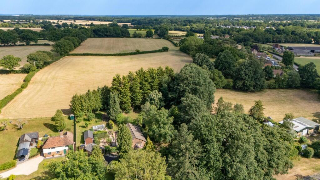 This detached timber frame Colt bungalow stands approximately 90' back from the Smarden Road on a secluded plot of approximately 1.05 acres backing on to farmland.