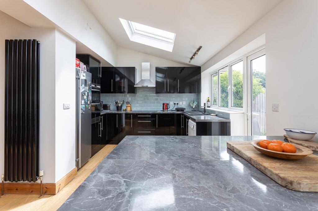 A generously proportioned four-bedroom semi-detached home with driveway parking and a stunning 135 ft long south facing garden.