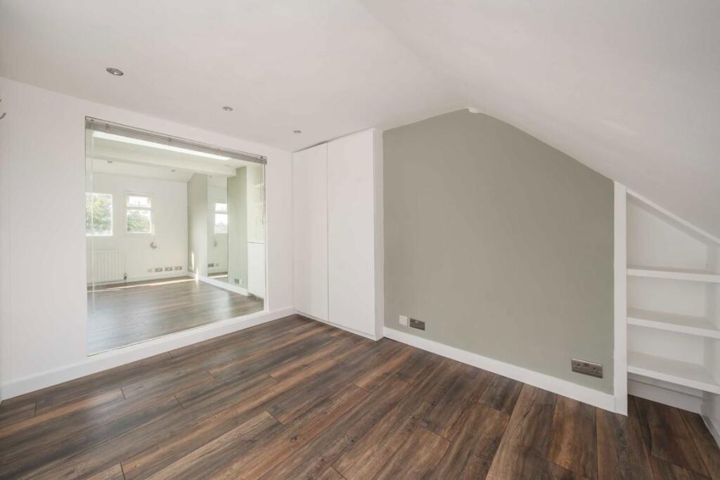A contemporary style top floor flat neutrally decorated throughout and benefits from wood floors throughout, an open plan kitchen reception, spacious double bedroom and an extra study room.