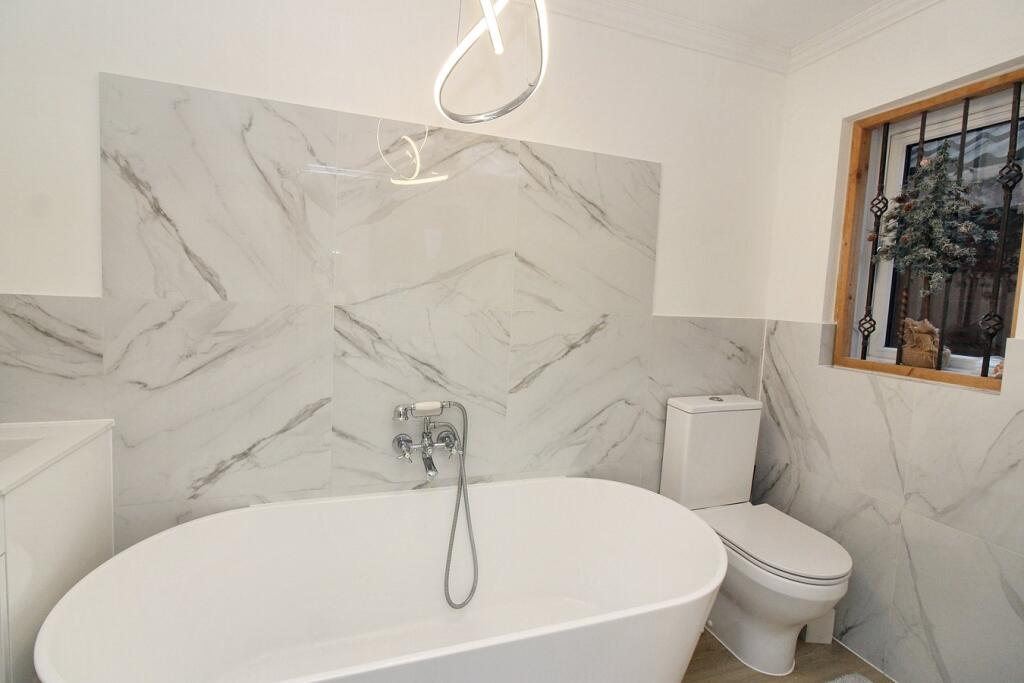 This three-bedroom, two-bathroom property located on Eisenhower Road in Shefford, Bedfordshire presents a compelling opportunity for families seeking a home in a desirable area. The house has clearly undergone recent renovations, boasting modern bathrooms and a sleek, updated kitchen. The interior is bright and well-presented, reflecting contemporary design choices. The inclusion of a rear garden adds to its appeal. The property’s proximity to highly-rated local schools is a significant advantage for families with children. While there is minor wall damage visible in one image, this is not extensive and appears repairable. The lack of precise plot size information and the moderate distance to Arlesey train station are aspects that may influence potential buyers’ decisions. Overall, the property is a solid offering that balances modern updates with the convenience of a well-regarded town location. The list price appears to be reasonably competitive with similar properties in the area.