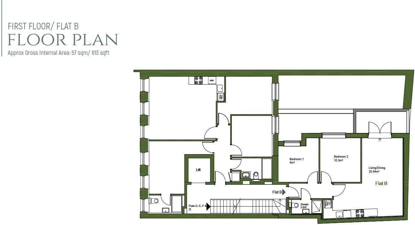 This brand-new development offers seven high-specification apartments, along with a commercial unit, all designed to combine classic British elegance with modern living. This first floor, two-bedroom apartment features a spacious open-plan living and dining area, enhanced by luxurious wood floori...