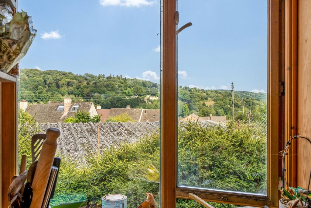 An older style semi detached house located in a quiet residential area on the outskirts of Nailsworth town with three bedrooms, an insulated cabin, and mature gardens. Lead photo is of the rear