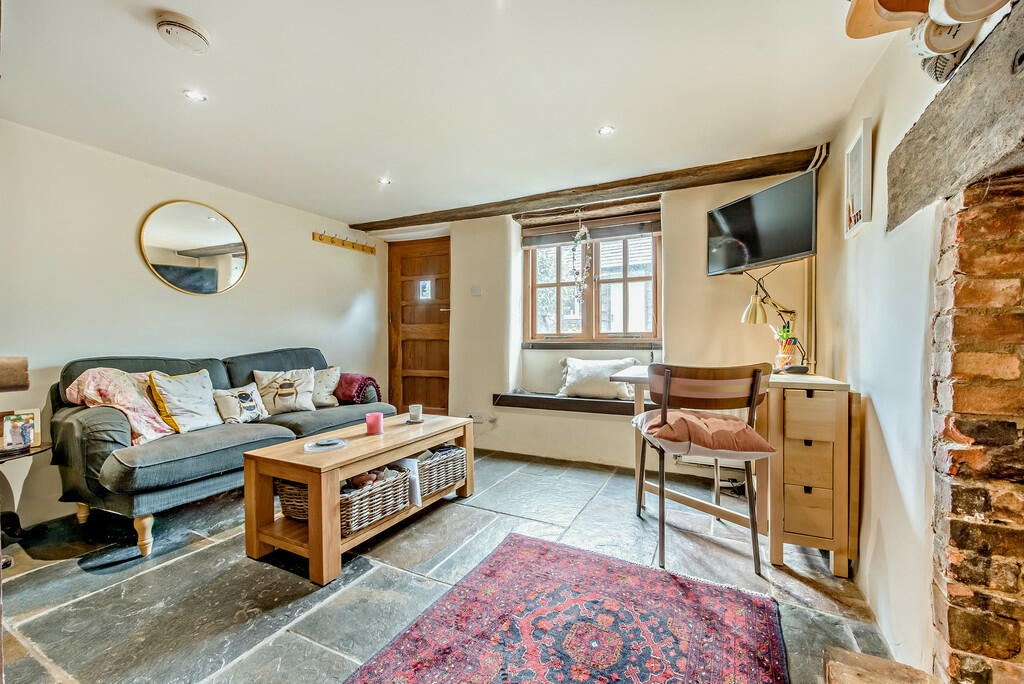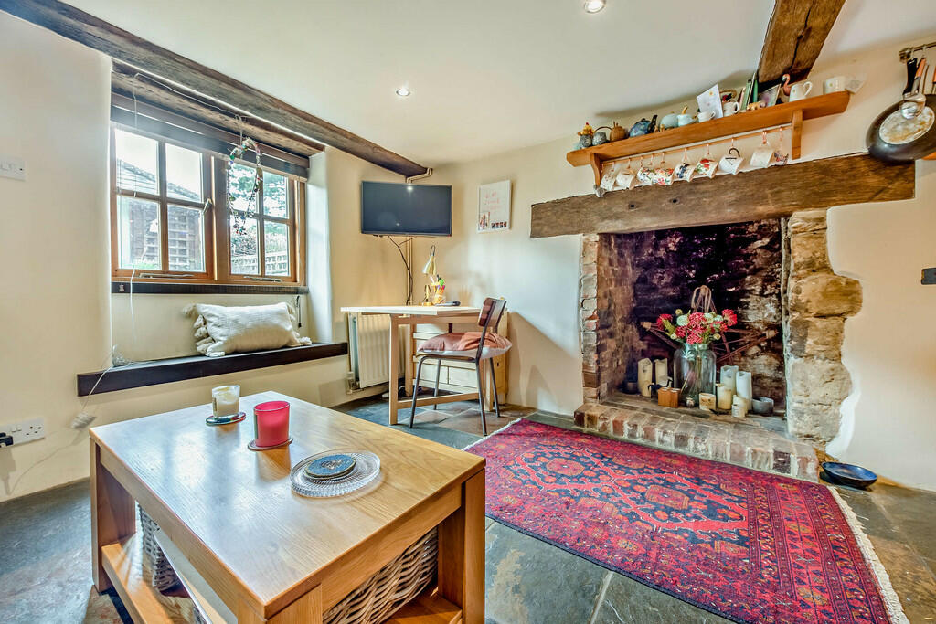 The property’s interior showcases a blend of original character elements—exposed beams and stonework—and modern conveniences, like an updated kitchen and bathroom. However, the exposed brickwork and the partially finished fireplace might require further investment or aesthetic considerations, depending on the buyer’s preferences. The small garden offers potential for enhancements, which could impact its perceived value.