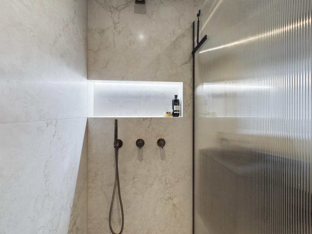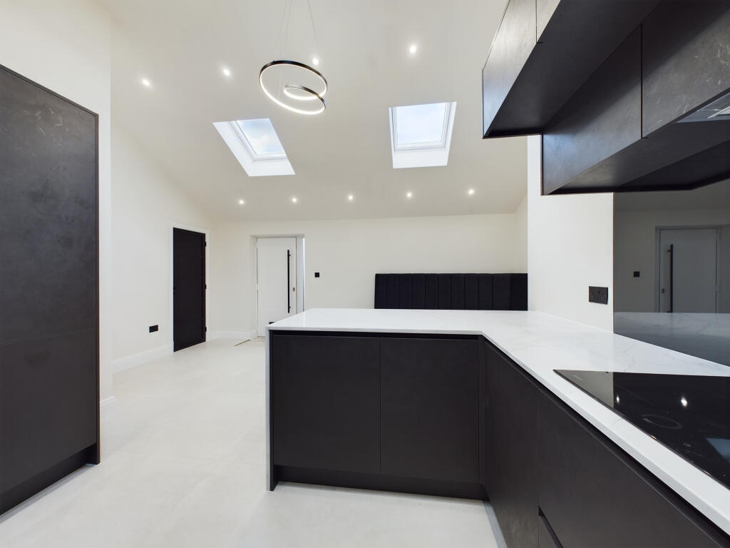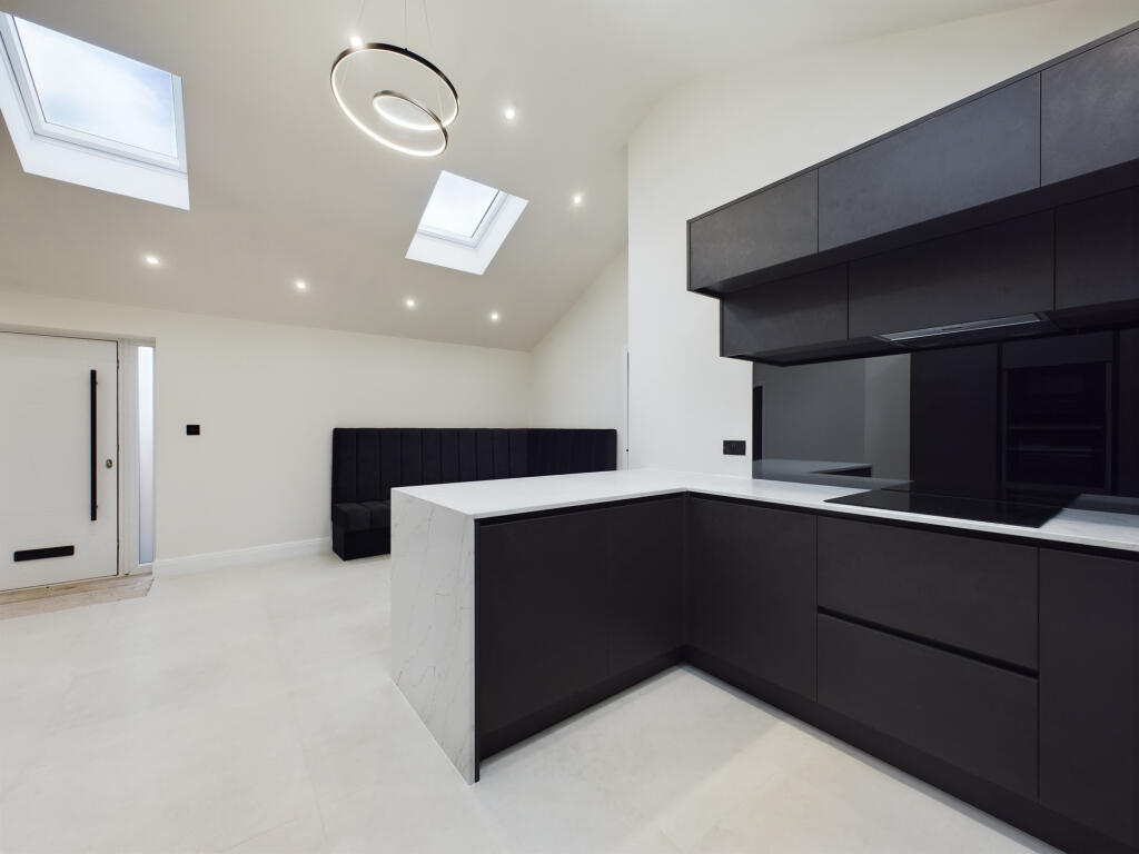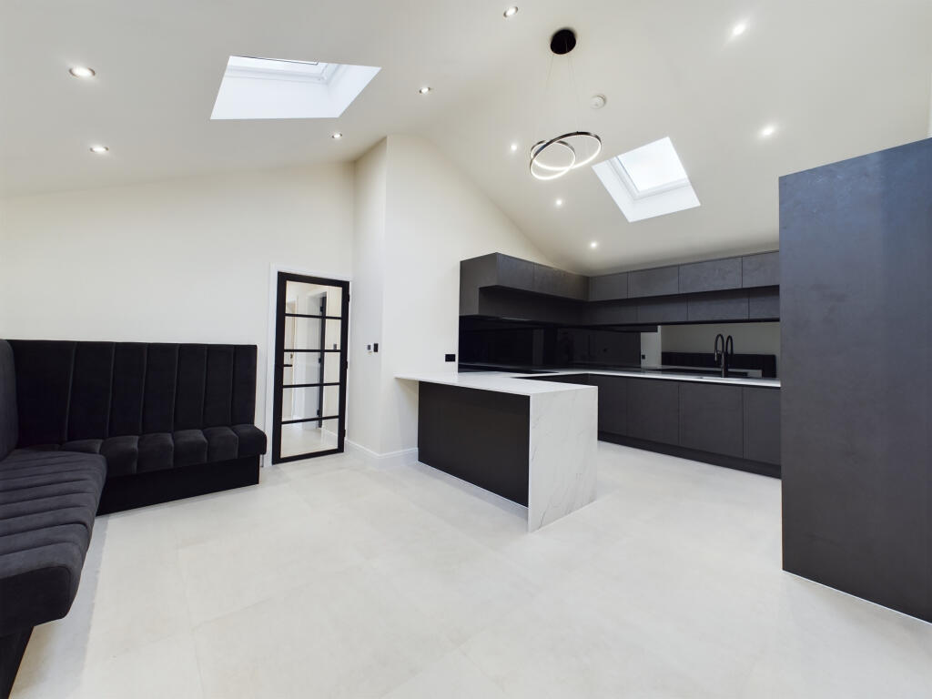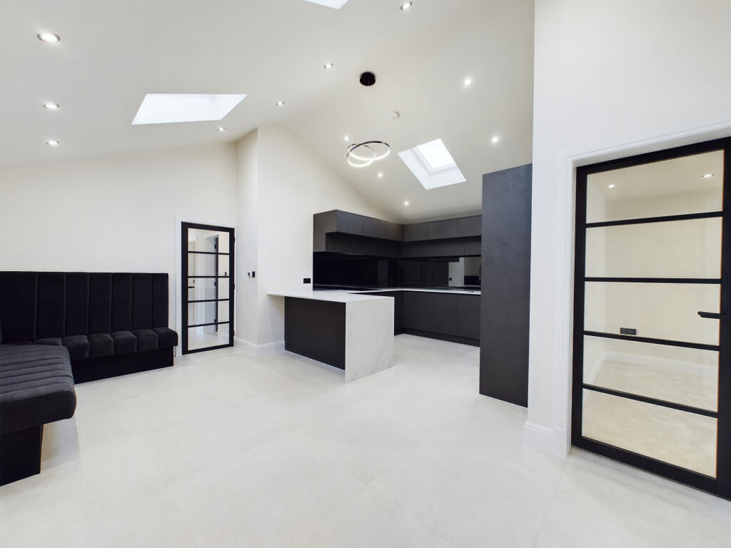 This property in Lytham St Annes presents a compelling proposition, especially for buyers seeking a modern and contemporary home in a desirable location. The images showcase a recently renovated interior characterized by clean lines, high-quality finishes, and a well-designed open-plan kitchen and living area. The kitchen features modern cabinetry, integrated appliances, and stylish countertops. The bathroom is equally impressive, showcasing modern fixtures and a contemporary design.