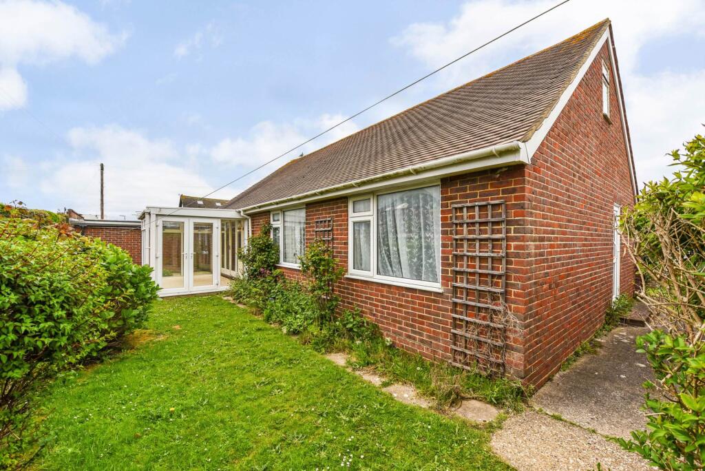 DETACHED 3-BED BUNGALOW just yards from the BEACH with GARAGE, DRIVEWAY + generous FRONT GARDEN And SOUTH-FACING WALLED rear courtyard. In need of FULL MODERNISATION but packed with POTENTIAL.