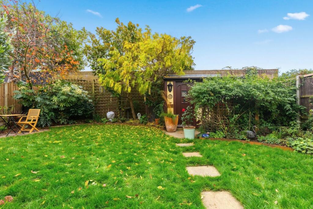 This is a semi-detached property in Ashford Town, Surrey. It features three bedrooms and one bathroom. The property includes a modern kitchen and bathroom, a conservatory, and a well-maintained garden with a shed. Ashford train station and several schools are nearby, making it a convenient location for commuters and families. The list price is higher than the average for the area, and it’s difficult to assess value without the property’s square footage.