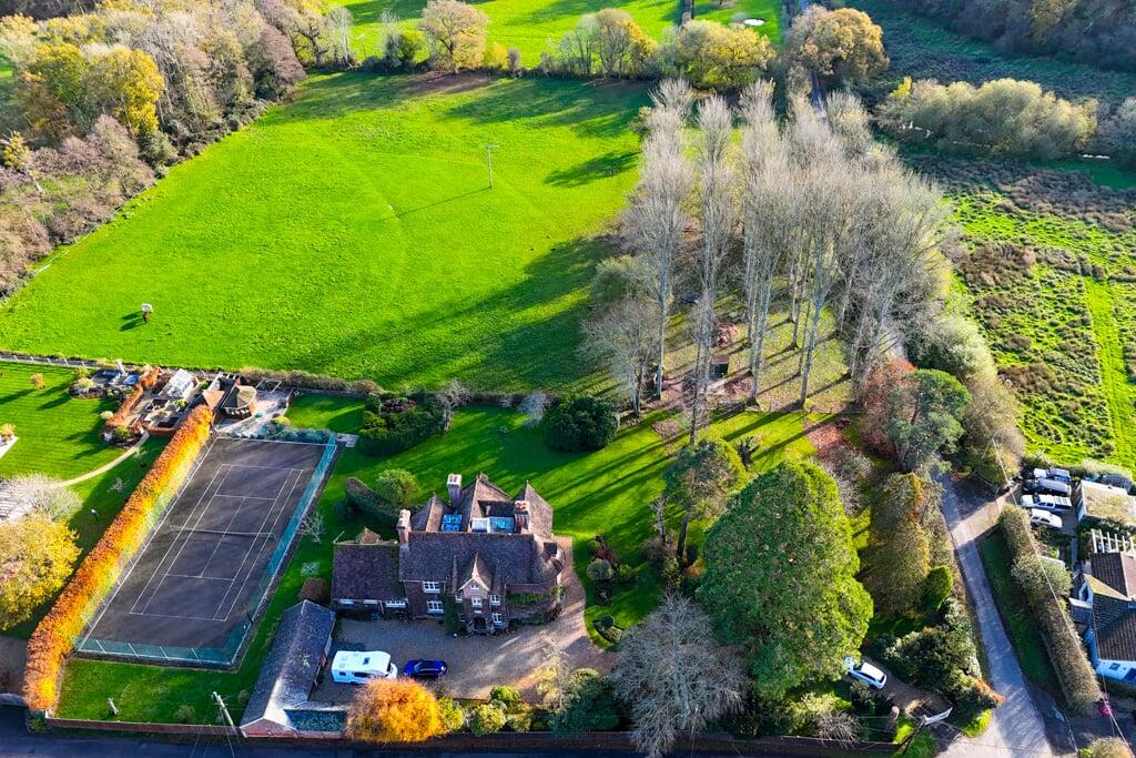 A beautifully balanced period home that effortlessly blends traditional charm with modern comfort. The property is set in stunning grounds in excess of 1.5 acres and further benefits from outbuildings and a tennis court.