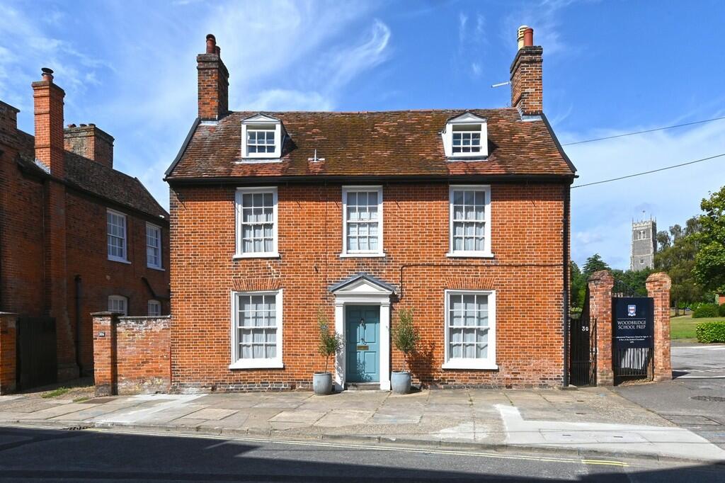 An impressive, double-fronted, Grade II Listed, detached home constructed in the 18th century in a prestigious position in the heart of Woodbridge with views over St. Mary's Church and the Abbey.