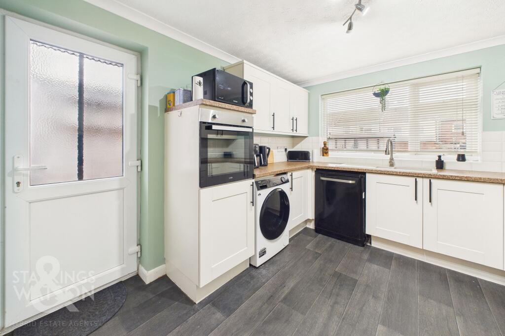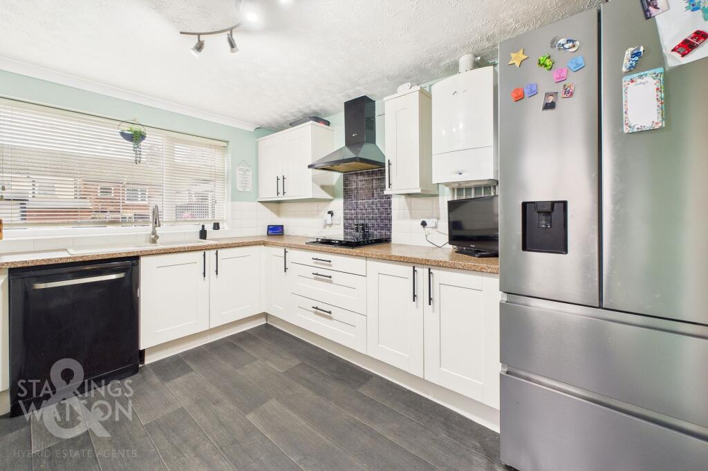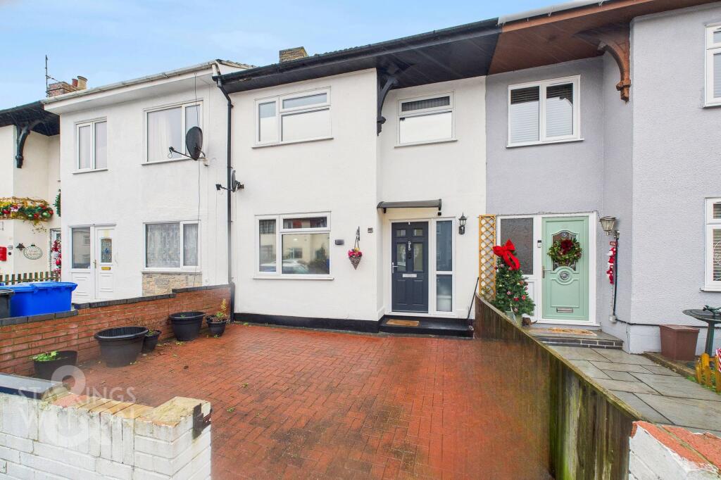 This is a three-bedroom terraced house in Lowestoft, Suffolk. The property is in generally good condition, with a modern kitchen and bathroom. It has a good-sized garden. The property is located within 1km of the Lowestoft train station and is within walking distance of Roman Hill Primary School. The listing price is £170,000.