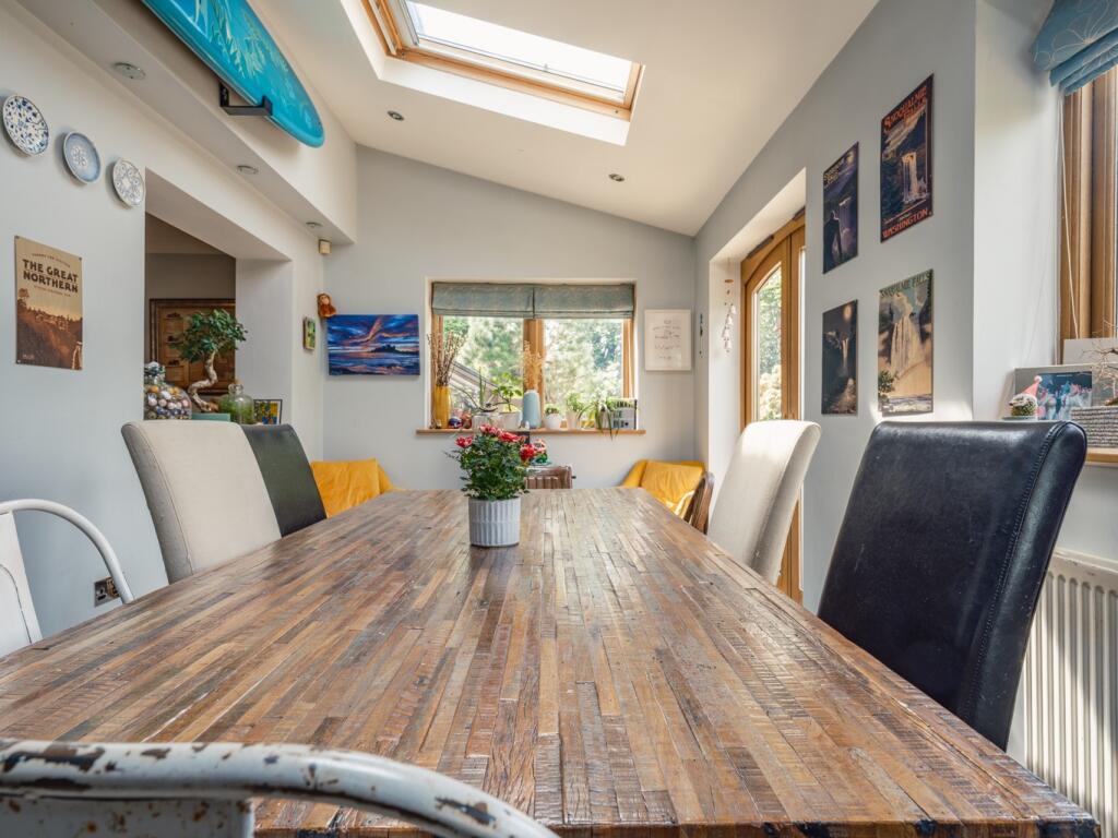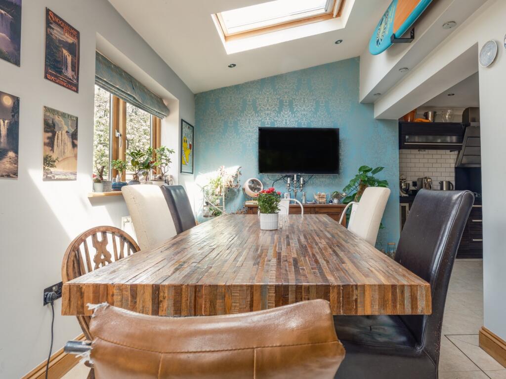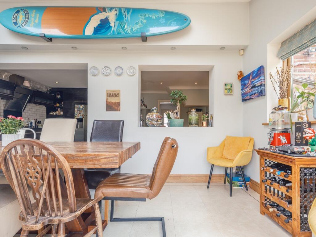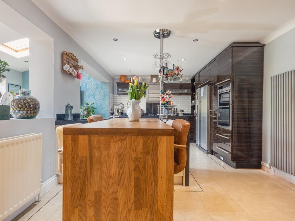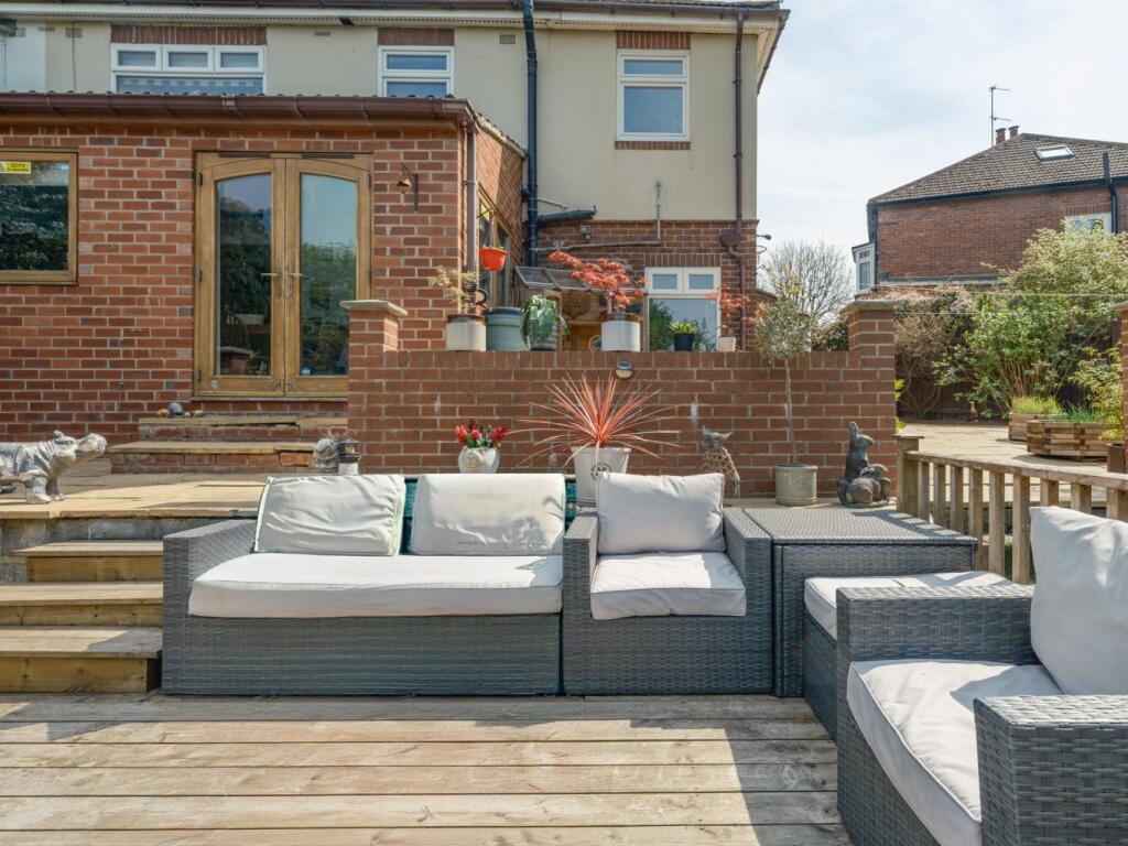 This property is a 4-bedroom, 2-bathroom semi-detached house located on Broxholm Road in Heaton, Newcastle upon Tyne. The property benefits from a substantial rear garden which is tiered and includes a decked area. The house itself appears to be well maintained and modernised, particularly the kitchen which has been recently updated to a high standard.