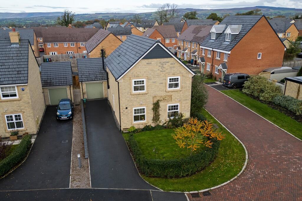Beautifully presented four-bedroom detached home on Half Penny Meadows, Clitheroe. Features modern interiors, landscaped garden, detached garage, and Pendle Hill views. Ideal family home in a quiet cul-de-sac near countryside and local amenities.