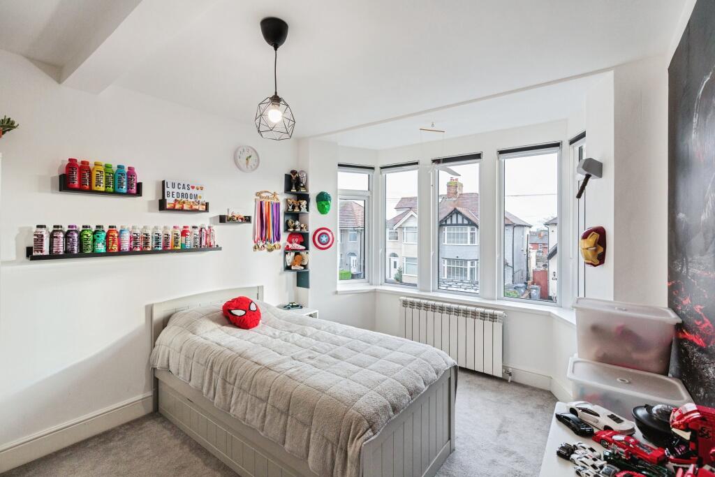 This semi-detached property on Rivington Avenue in Bispham, Blackpool, offers four bedrooms and three bathrooms. The house has been modernised, featuring a contemporary kitchen and stylish bathrooms. It also benefits from a well-maintained garden. The property is located near schools and transportation links, making it suitable for families and commuters. However, the asking price of £275,000 appears high compared to the average property price in the area, although the number of bedrooms and bathrooms could justify the premium.
