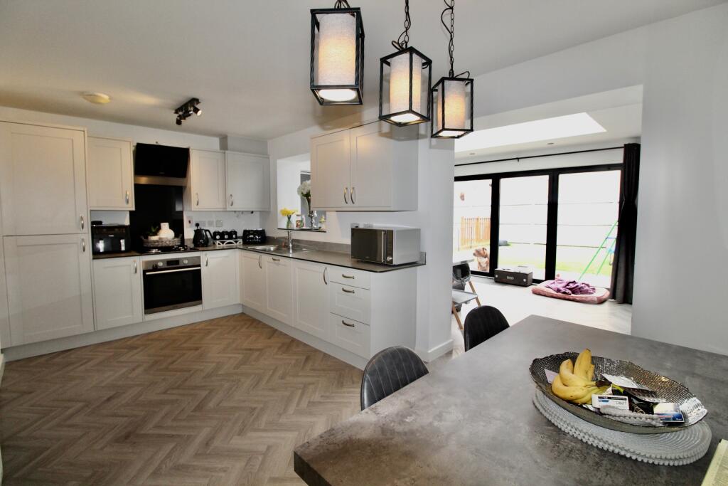 Mandairs is pleased to present this extended large four bedroom family home to the market. Providing an Orangery, a refitted kitchen, new kardean flooring, an ensuite to the master bedroom, a fitted double wardrobe to the master bedroom, a garage and located in the sought after area of Cardea.