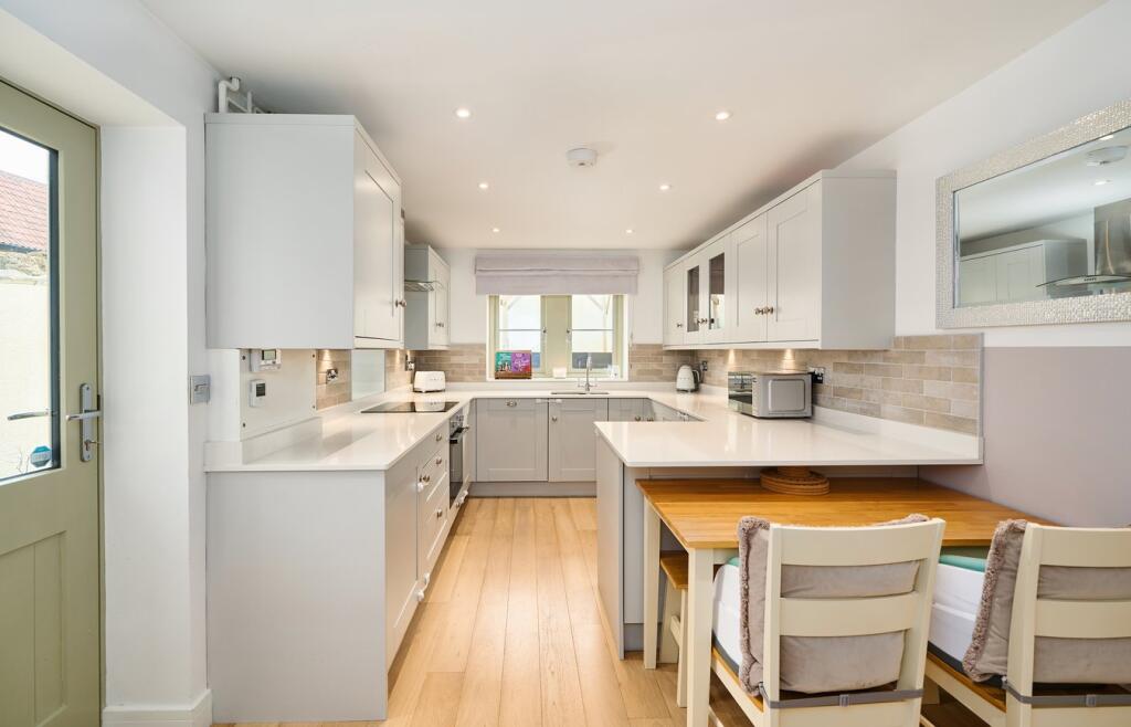 This property is a charming, seemingly newly built or recently renovated, three-bedroom house located in the village of Rode, Somerset. The house boasts a modern and well-maintained interior, with a contemporary kitchen and bathroom. The photos showcase a high standard of finish and tasteful decor. The property also benefits from a small, enclosed garden, ideal for low-maintenance outdoor living. Rode is a desirable village with a good primary school nearby, and relatively good transport links to Frome and other towns. While the precise plot size is not specified, the property appears to be well-proportioned for its size. The asking price of £400,000 appears to be in line with comparable properties in the area, although a more precise comparison is hampered by the absence of square footage data for many of the nearby listings. Overall, this property presents a strong proposition for those seeking a modern, well-maintained home in a peaceful yet convenient village setting.