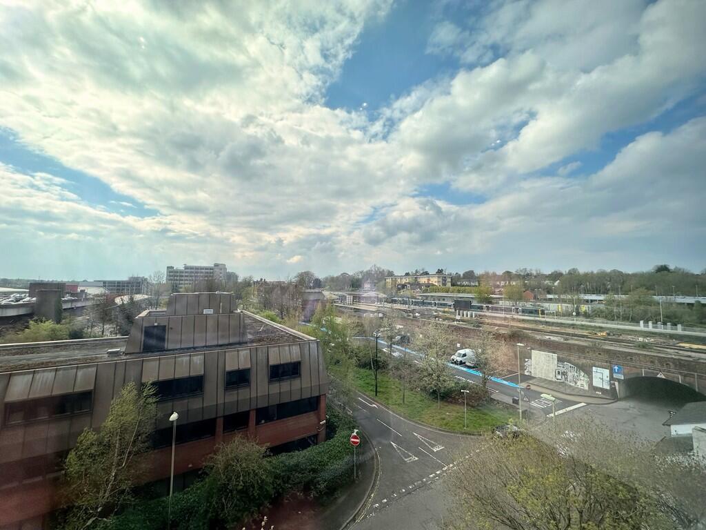 A 2-bedroom apartment on the 4th floor, situated adjacent to Basingstoke's train station, and comes with gated parking. The apartment has high-quality appliances and fine detailing. The kitchen area includes built-in appliances including a dishwasher.