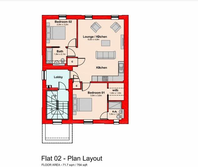This two bedroom apartment provides a spacious open plan living area with a highly specified kitchen - not to mention the quality fixtures and fitting you can find in the ensure and bathroom. Flat 2 is serviced by a well kept communal stairwell and great views of the surrounding area.