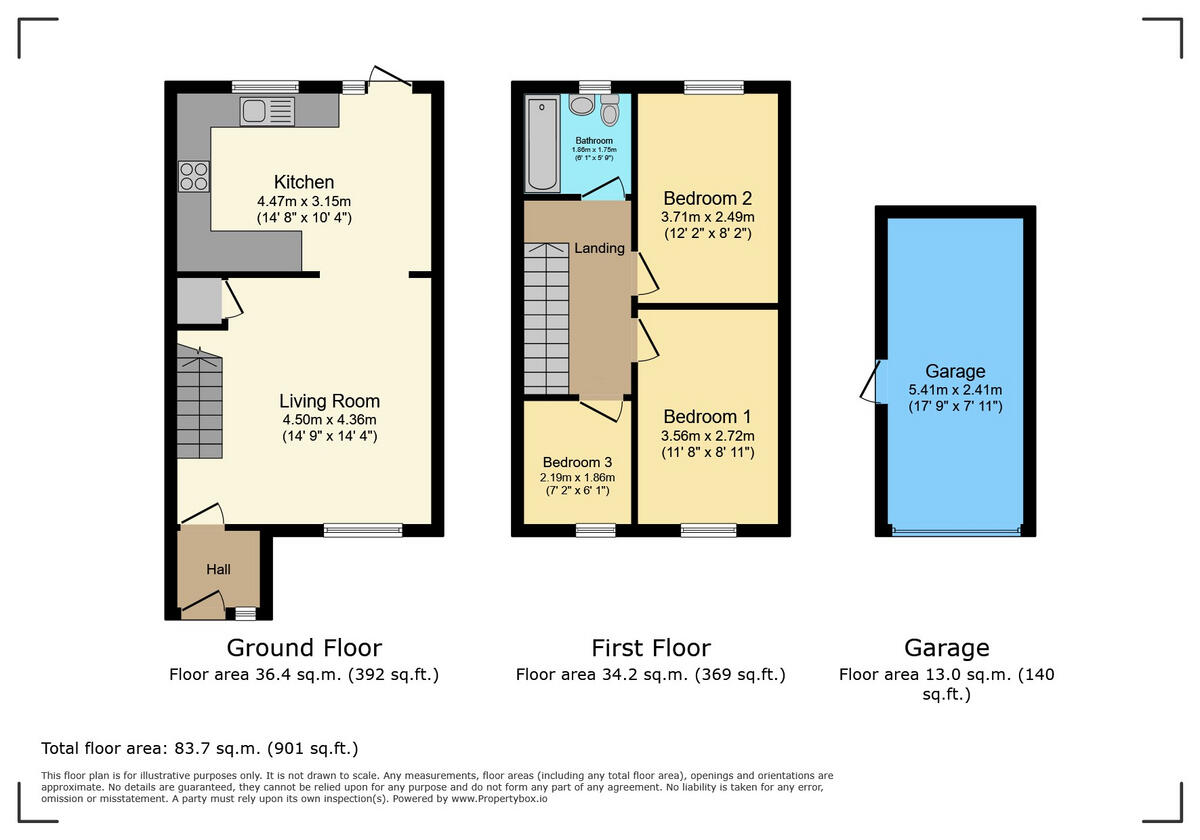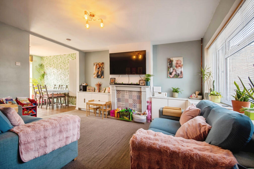 Super 3 bed with upstairs bathroom in popular location with open plan downstairs living accommodation onto the rear garden which has detached garage to bottom