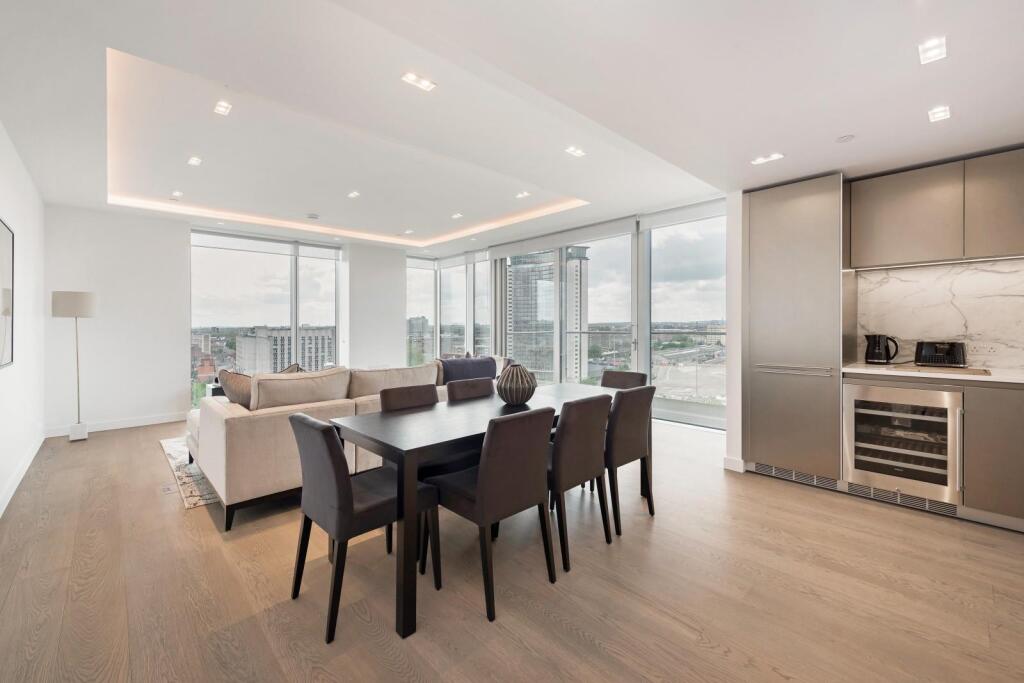 This three-bedroom, two-bathroom apartment in Lillie Square, Earl’s Court, offers a luxurious and modern living experience. Located in a prime area of Kensington and Chelsea, the property benefits from convenient access to public transport, with West Brompton station a short walk away. The apartment itself features a high-quality finish, with a modern, contemporary design visible in the high-resolution images. The kitchen and bathrooms are particularly striking, showcasing high-end fixtures and fittings. The lack of outdoor space, common for apartments of this type, is a consideration, however, the expansive windows provide excellent natural light and panoramic city views. Given the location, amenities, and condition, the property represents a desirable offering in the London market. Further research into recent comparable sales data would support a more precise assessment of the list price.