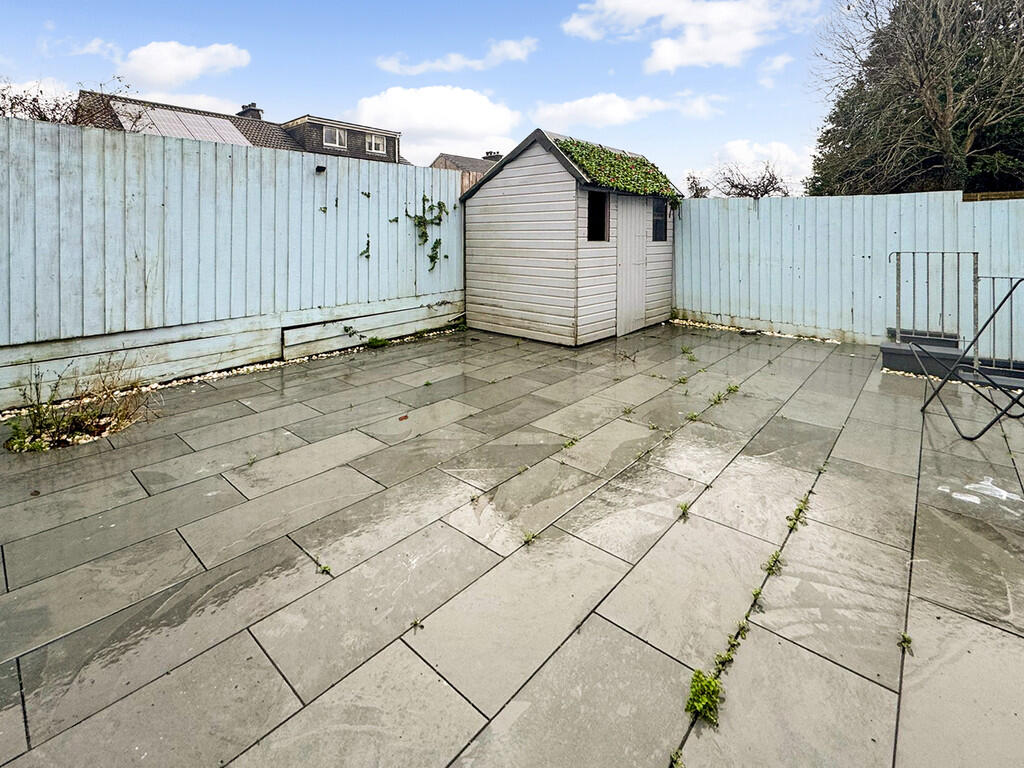 This is a four-bedroom end-of-terrace property in Pennycross, Plymouth. The property appears to be in good condition, with a modern kitchen and bathrooms. It has a paved garden area with a shed. The property is located in a residential area with access to schools and transportation. The listing price of £340,000 seems reasonable given the size and condition of the property, and the local market conditions.