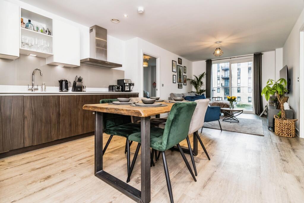 The property is a two-bedroom, two-bathroom apartment located in Salford, Greater Manchester. The area benefits from proximity to Salford Central train station (1.07km), providing convenient access to Manchester city centre and beyond. Several other train stations are also within a reasonable distance. Additionally, there are several primary schools within a close radius, with varying Ofsted ratings. The canal-side location adds to the appeal, offering attractive views and recreational opportunities. The provided images showcase a modern, well-maintained apartment. The kitchen and bathrooms appear new or recently renovated, with high-quality fixtures and fittings. The living areas are presented in excellent condition, suggesting a property that is well-cared for. There is no visible evidence of disrepair or the need for renovation. The property has a plot size of 687 sqft. While this provides some outdoor space, it is not a large plot. The communal areas of the development appear to offer additional green spaces, but the size and quality of these are not specified. The list price is £265,000. The average price for properties in the area is £265,241, and the average price per sqft is £391. Given the apparent excellent condition of the apartment, its desirable location, and the inclusion of some outdoor space, the list price appears to be in line with the local market. However, without knowing the exact square footage of the apartment, a precise price-per-square-foot comparison cannot be made. More information on the property’s size is needed for a more conclusive evaluation.