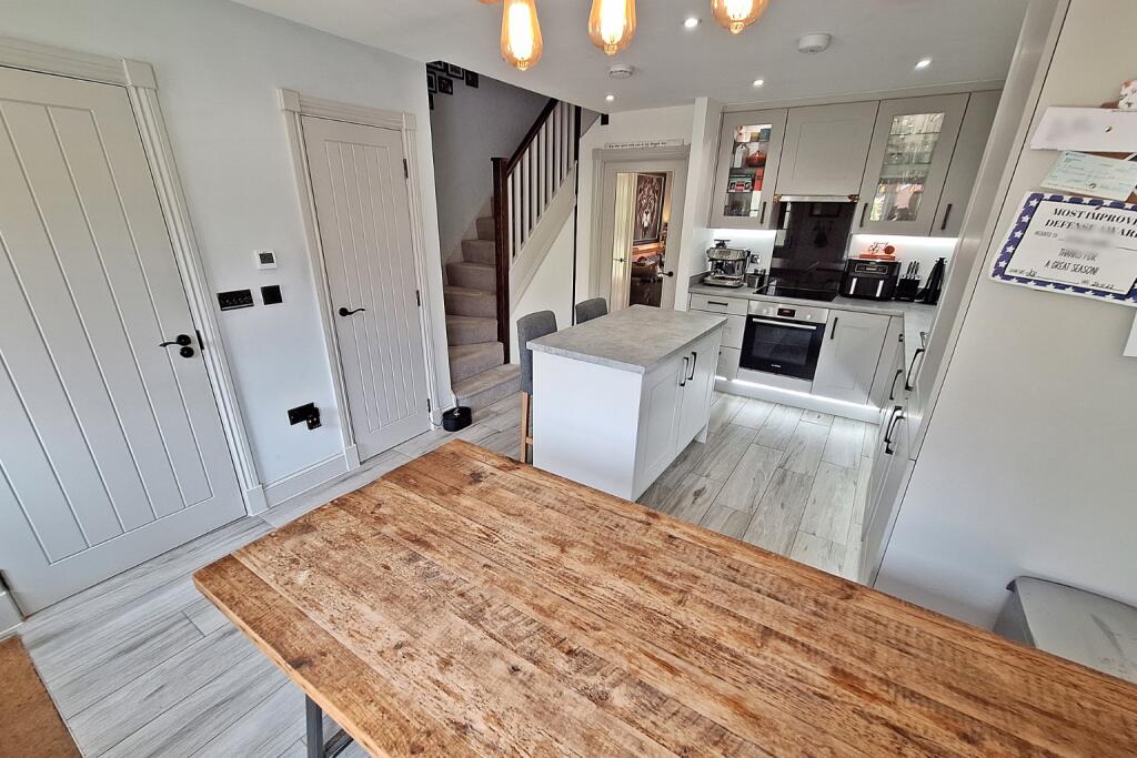 This modern three-bedroom detached home, built circa 2020, boasts a stylish open-plan kitchen/diner, bright living areas, and an enclosed garden. Ideally located near schools and transport links.