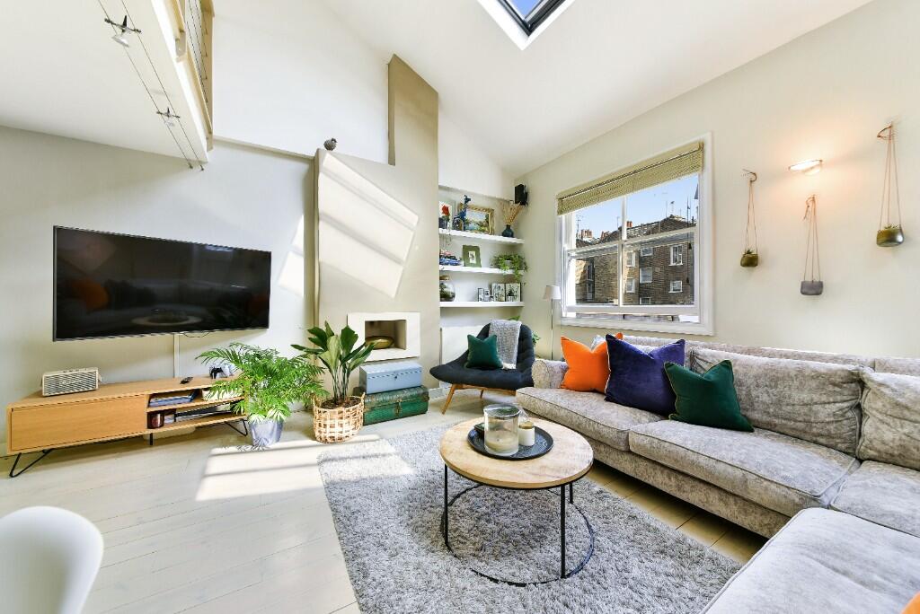Contemporary split level apartment in W11, Notting Hill. boasts a gas fireplace, private entrance off cobbled Mews, a spacious mezzanine separate bedroom and excellent entertaining space due to a large reception room. High ceilings, large south facing windows. Wooden floors and over 500sqft.