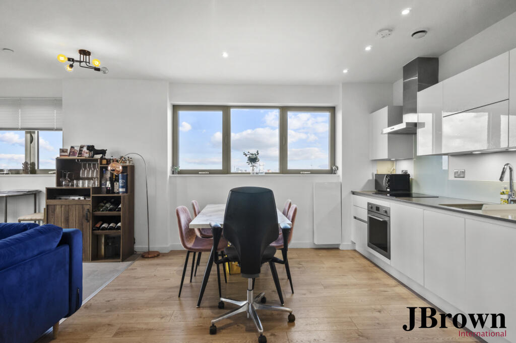 This stylish 609 sq. ft. apartment offers contemporary living in a sought-after East London location. The bright open-plan reception features a Juliet balcony, seamlessly connecting to a sleek kitchen with integrated appliances. A spacious bedroom, modern bathroom, and secure parking complete thi...