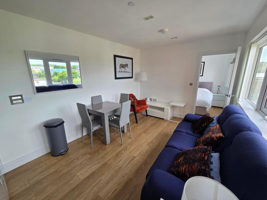 This is a one-bedroom flat in Arrowhead House, Laporte Way, Luton. The property appears to be in good condition, with modern interiors. It is located in Dallow, which offers reasonable access to local amenities and transport. The lack of private land is a drawback, but the price seems fair for the location and condition.