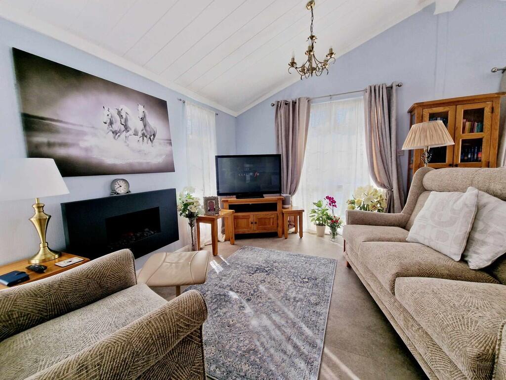 Spotlessly maintained detached two bedroomed park home bungalow on the edge of this popular gated community.. Open plan design. Vaulted ceiling. Well appointed kitchen. En-suite shower room and family bathroom. Parking beside unit .Attractive gardens. Gas central heating. Double glazing. Qualit...