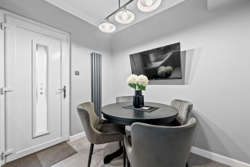 Stylish two-bedroom terraced house presented in true walk-in condition, featuring a modern dining kitchen, contemporary bathroom and private rear garden. Located within the popular Fullarton Park area of Tollcross, close to local schooling and amenities, with excellent transport links.