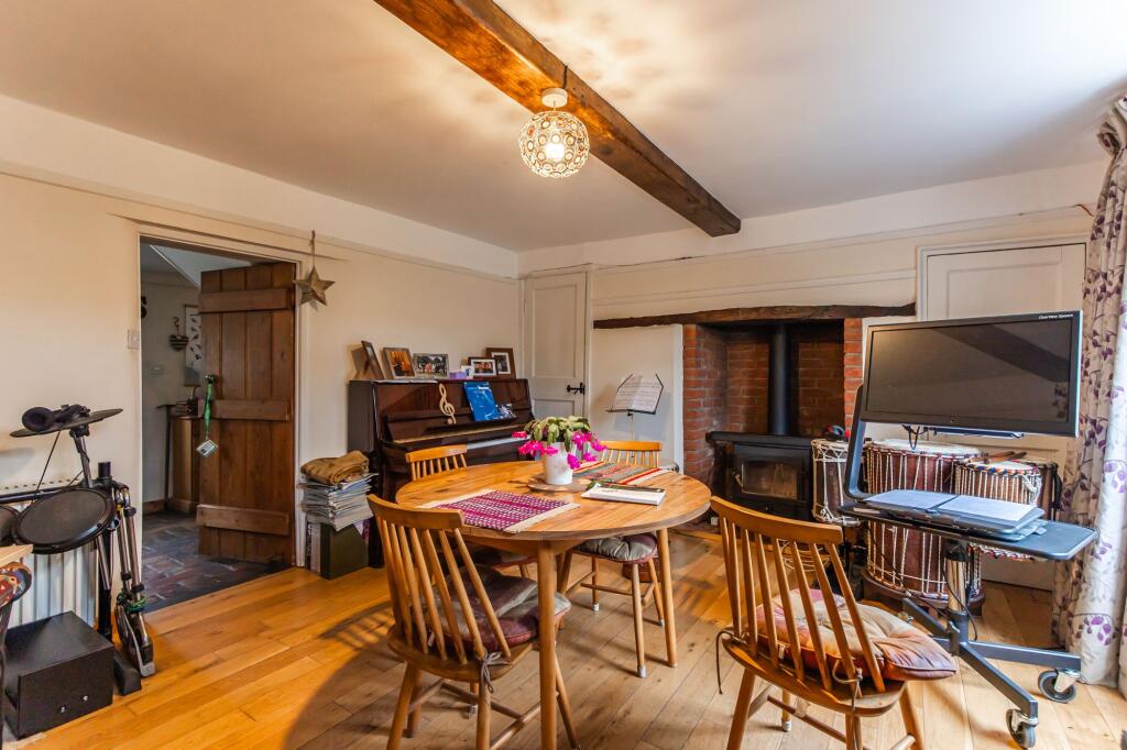 A charming detached three-bedroom, two-bathroom period home with a kitchen/dining area overlooking gardens. Set on a third of an acre, it offers parking, maintained gardens, and versatile outbuildings.