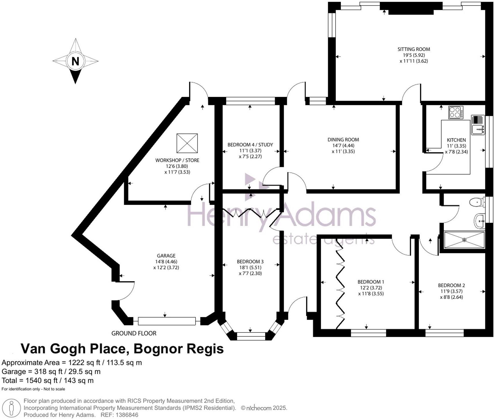 This is a detached bungalow in Van Gogh Place, Bersted. It features four bedrooms and one bathroom, with a total square footage of 1,269.63. The property includes a garden and a garage. While the interior appears modern, some exterior aspects show signs of age. The location offers proximity to schools and transportation, but the price is slightly above comparable sales in the area. Overall, it presents a solid opportunity with some room for negotiation on price. The property is located close to schools, with Bartons Primary School and Bersted Green Primary School both rated as ‘Good’ by Ofsted. Bognor Regis train station is also within reasonable distance, offering connections to other destinations. The house has a modern kitchen and bathroom, but the exterior brickwork and roof show signs of aging. The property includes a garden with a patio area, providing outdoor space for relaxation and recreation.