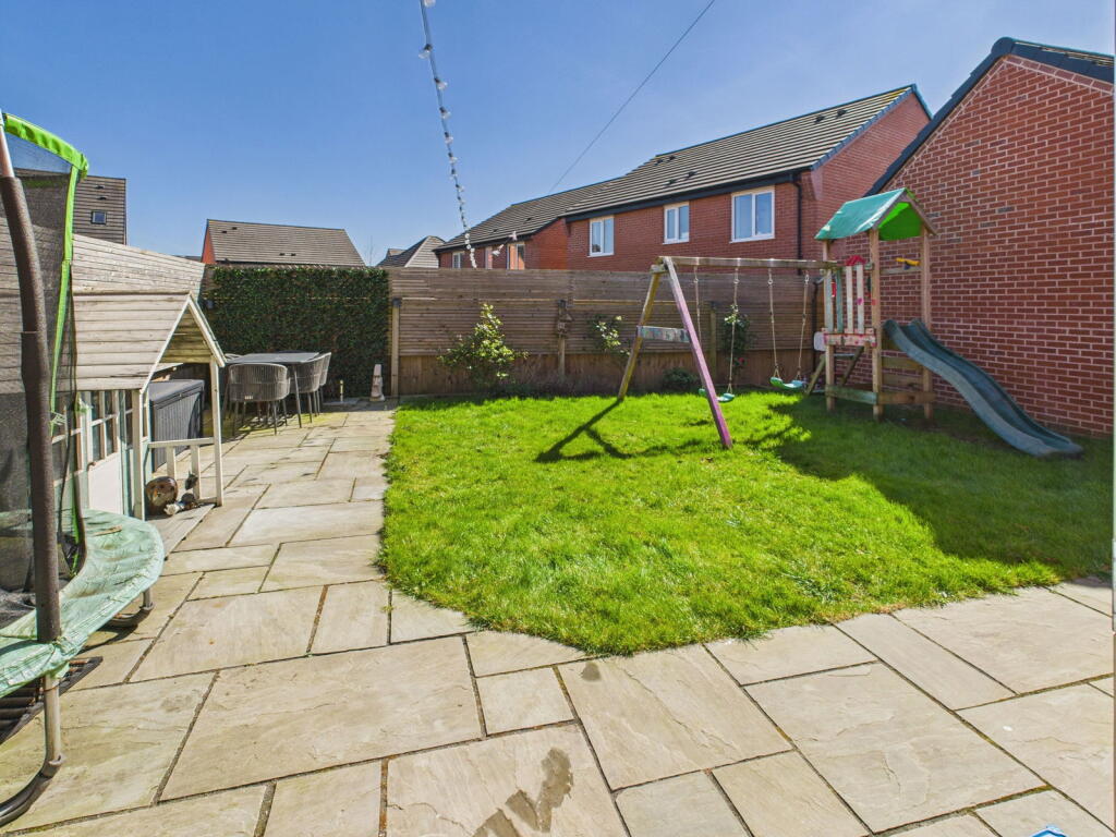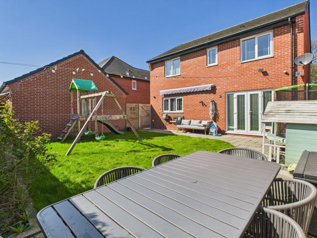 The property is a 4-bedroom, 2-bathroom detached house located in Shavington, Crewe, Cheshire. It benefits from relatively close proximity to Crewe railway station (1.69km), offering good transport links. Several primary schools with “Good” Ofsted ratings are also within a reasonable distance. The property itself appears to be in excellent condition, with a modern kitchen and bathrooms. The images show a well-maintained interior and exterior, including a garden with a patio area and children’s play equipment. The list price of £350,000 is higher than the average price for the area (£277,804), but the property is larger than average (1261.64 sqft vs 1077 sqft). While the average price per square foot in the area is £257, this property’s effective price per square foot is lower, suggesting it might represent reasonable value, considering its condition and features. However, a direct comparison is difficult due to the lack of sqft data for nearby properties. The higher list price may be justified by the property’s superior condition and modern features compared to other properties in the area.