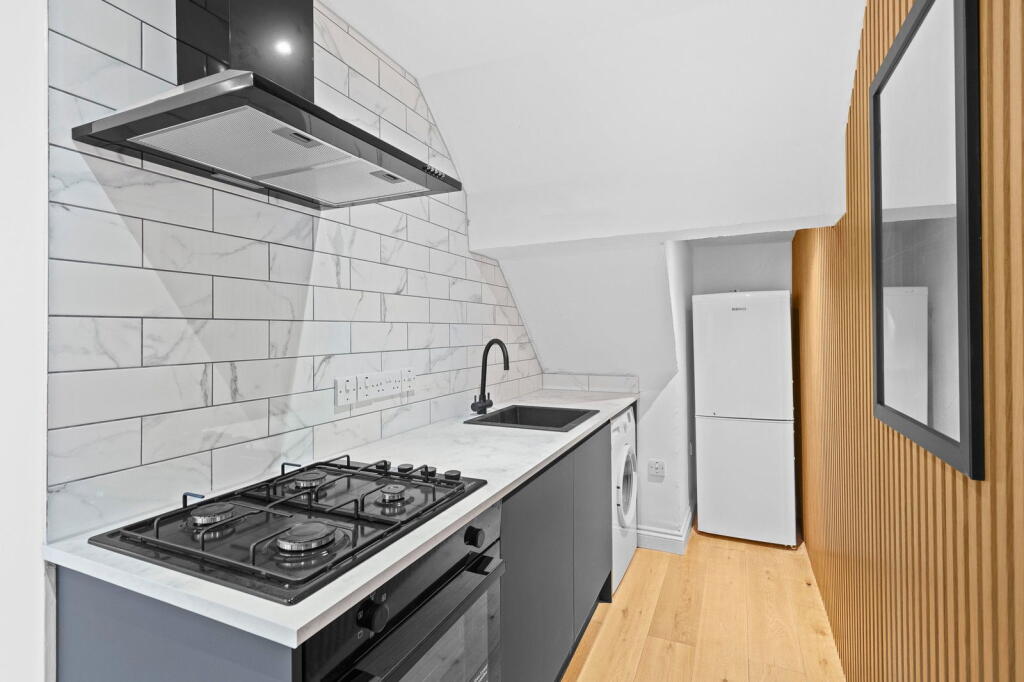 This is a one-bedroom ground floor flat located on Waller Road in New Cross, London. The property is listed by Reids Property with an asking price of £325,000. The flat appears to be in good, modern condition, with a recently renovated kitchen and bathroom. While the square footage is not specified, it is likely smaller than the average property in the area. The location is desirable, with good access to schools, transportation, and local amenities. However, as a ground floor flat, it likely has limited outdoor space. Overall, this property presents a good opportunity for a first-time buyer or investor looking for a modern flat in a popular London location.
