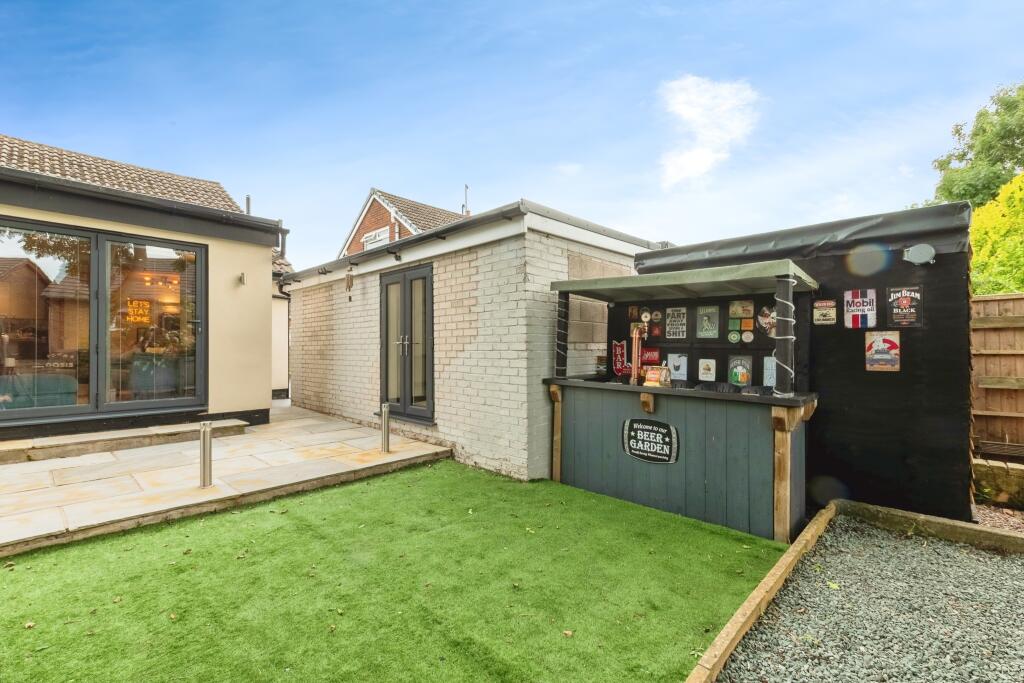This is a 3-bedroom semi-detached bungalow in Accrington. The property is in good condition and has a modern kitchen and bathroom. It also has a garden with a patio area, a shed, and a bar area. The property is located in a residential area, close to schools and transport links. The listing price seems high compared to the average property price in the area.