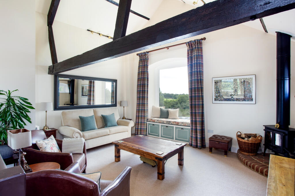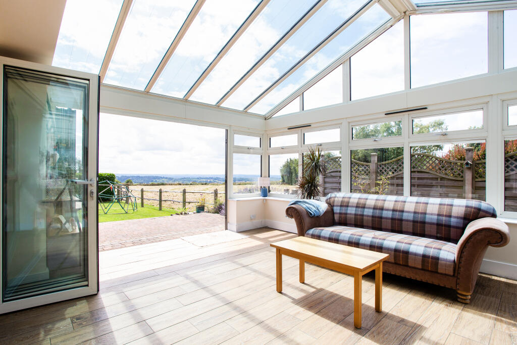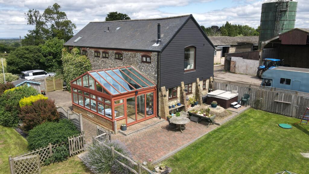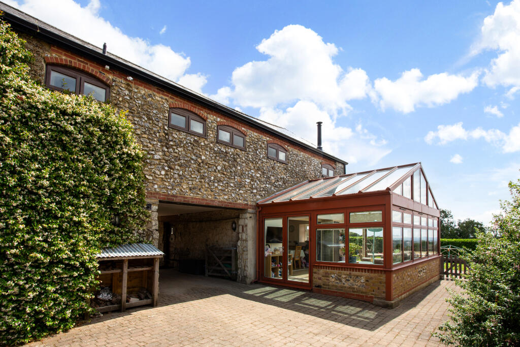 A very rare opportunity to own this stunning four bedroom barn conversion, set in a tucked away but well connected location with breath-taking views over the North Downs and ideal for country walks / dog walking.