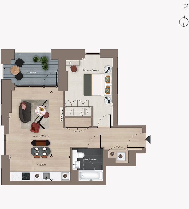 One bedroom home located on the 14th floor of The Aster at The Verdean. Benefitting from a private balcony with North West facing views.