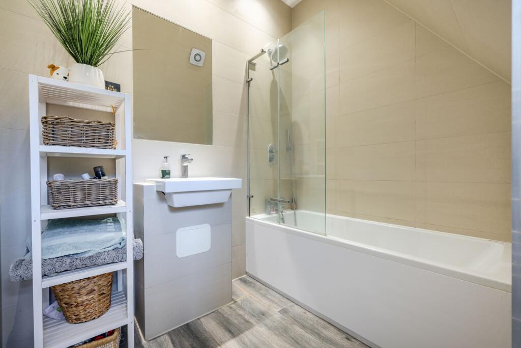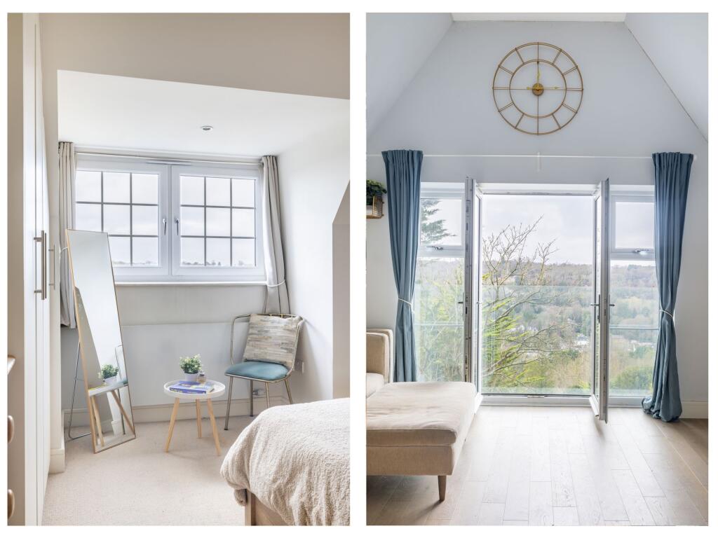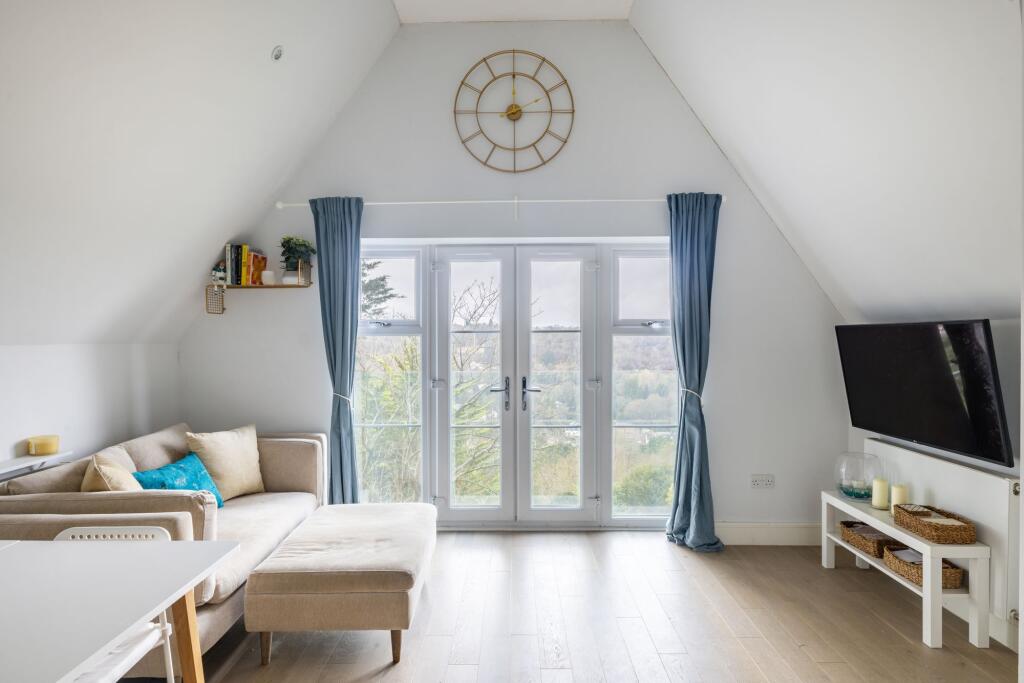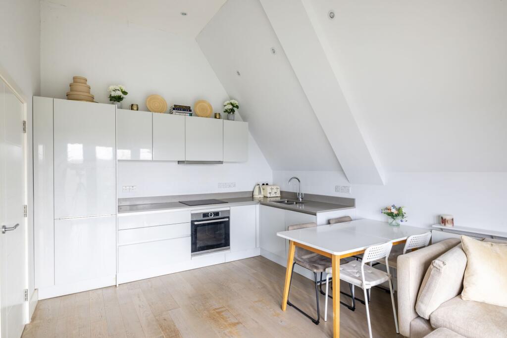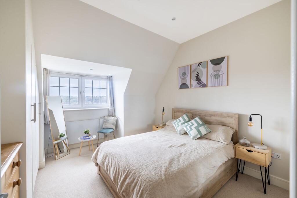Luxury two double bed maisonette in charming location. Modern design, open-plan living, Juliet balcony with views. Off-road parking, communal garden. Close to train station and village amenities.