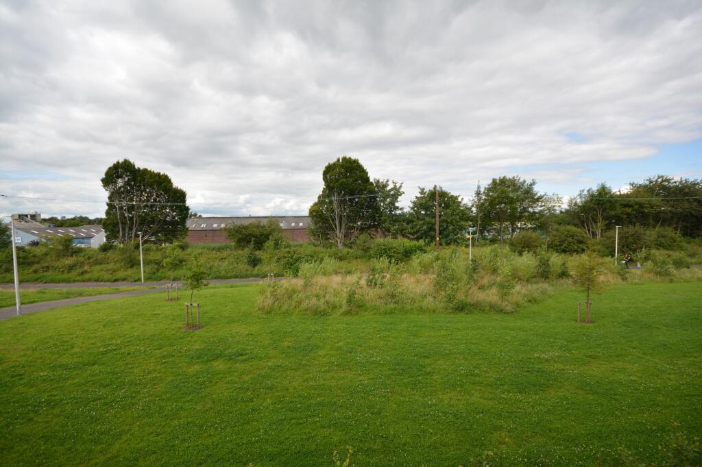 Luxury Persimmon built first floor two bedroom flat enjoying delightful tree lined open outlook towards the Forth and Clyde canal.