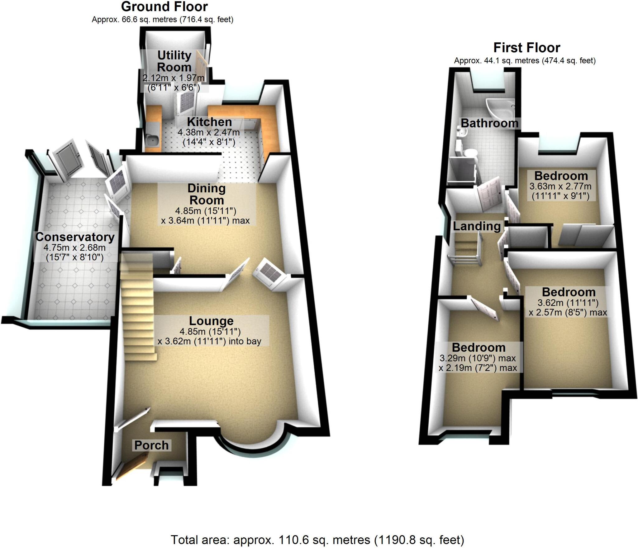 Considering the property’s condition, location, and land size, the list price of £300,000 appears reasonable. The average price for properties in the area is £304,000, and the average price per square foot is £368. This property is larger than average (1058 sqft vs 824 sqft average), and the additional features such as the modern kitchen and bathroom, and the garden, justify the price. However, the lack of data on comparable properties’ square footage makes a precise price comparison difficult.